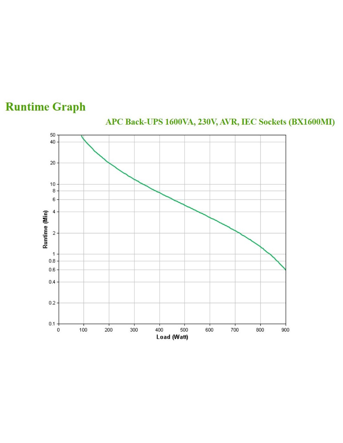 APC BX1600MI. Topologia UPS: A linea interattiva, Potenza in uscita: 1,6 kVA, Potenza in uscita: 900 W. Tipo di uscita AC: Accoppiatore C13, Presa di corrente: Accoppiatore C13, Quantità prese AC: 6 presa(e) AC. Tecnologia batteria: Acido piombo (VRLA), Tempo di salvataggio minimo a pieno carico: 1 min, Tempo di salvataggio minimo a mezzo carico: 6,5 min. Fattore di forma: Compatta, Colore del prodotto: Nero, Lunghezza cavo: 1,2 m. Larghezza: 140 mm, Profondità: 390 mm, Altezza: 190 mm