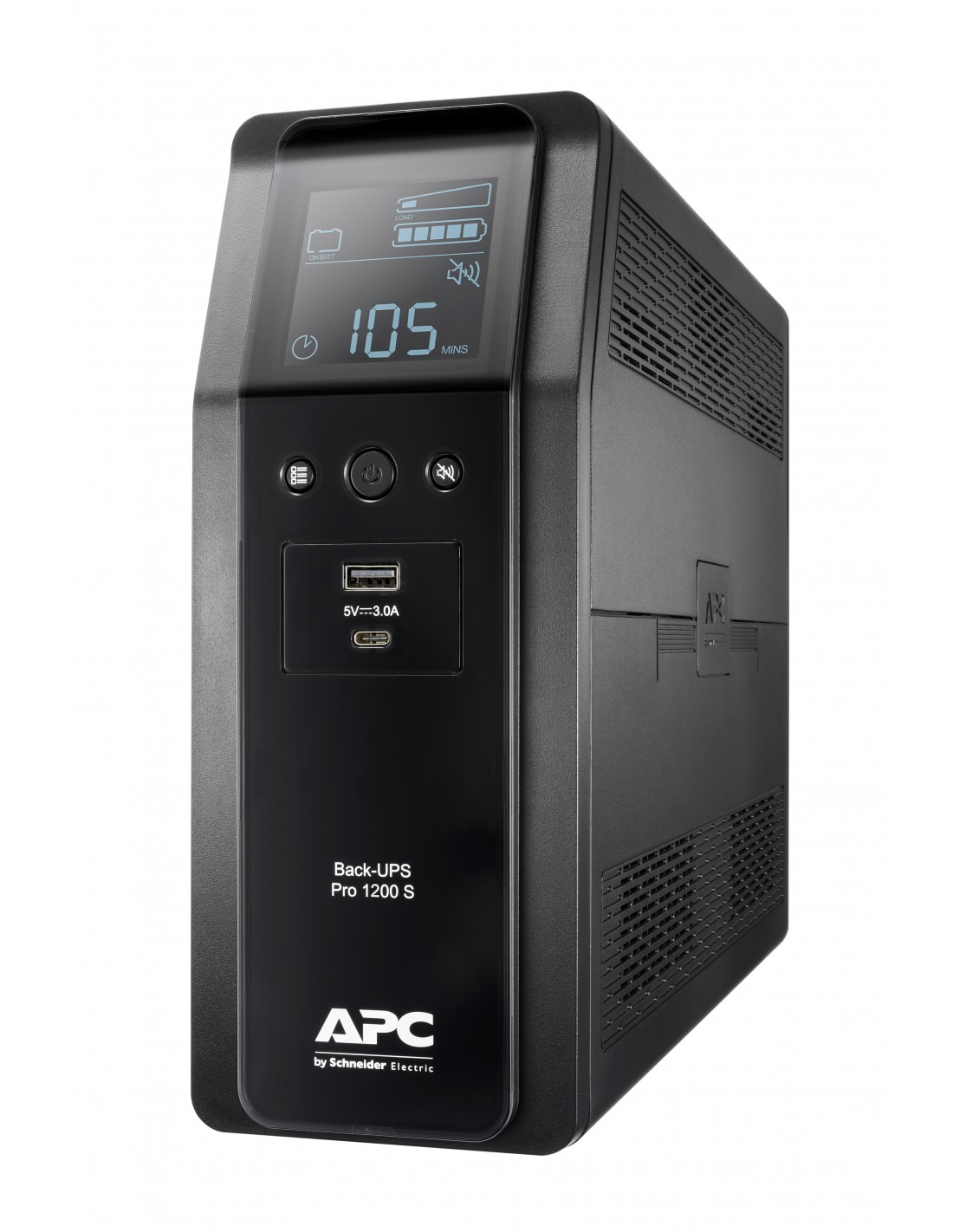 APC BACK UPS PRO BR 1200VA. Topologia UPS: A linea interattiva, Potenza in uscita: 1,2 kVA, Potenza in uscita: 720 W. Tipo di uscita AC: Accoppiatore C13, Quantità prese AC: 8 presa(e) AC. Fattore di forma: Tower, Colore del prodotto: Nero