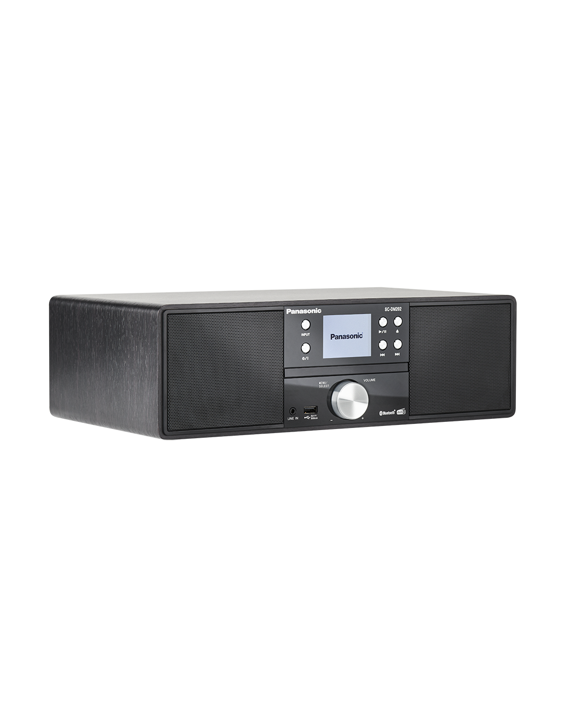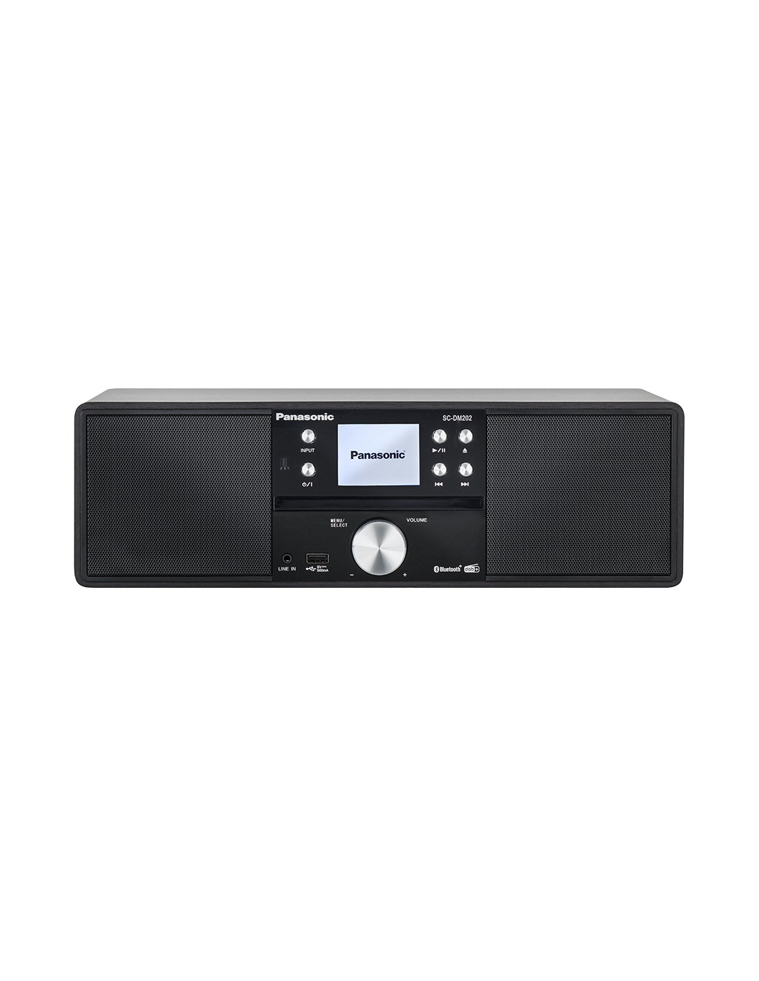 Panasonic HiFi Micro Anlage DAB+ SC-DM202EG-K schwarz mit Bluetooth. Tipo: Microsistema audio per la casa, Colore del prodotto: Nero, Meccanismo caricamento: Frontale. Potenza in uscita (RMS): 24 W, Tipo di speaker: Range completo, Tipo di connettività degli altoparlanti: Wireless. Bande del sintonizzatore: DAB+, Sintonizzatore migliorato: Sintonizzazione automatica, Tipo sintonizzatore: Digitale. Tipo di display: TFT, Colore retroilluminazione: Blu. Connessione cuffia: 3,5 mm, Tipologia alimentazione: AC