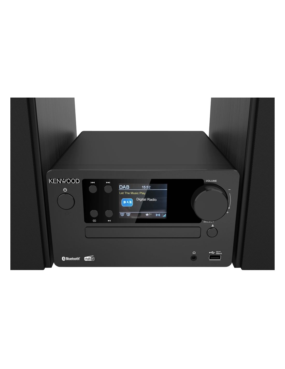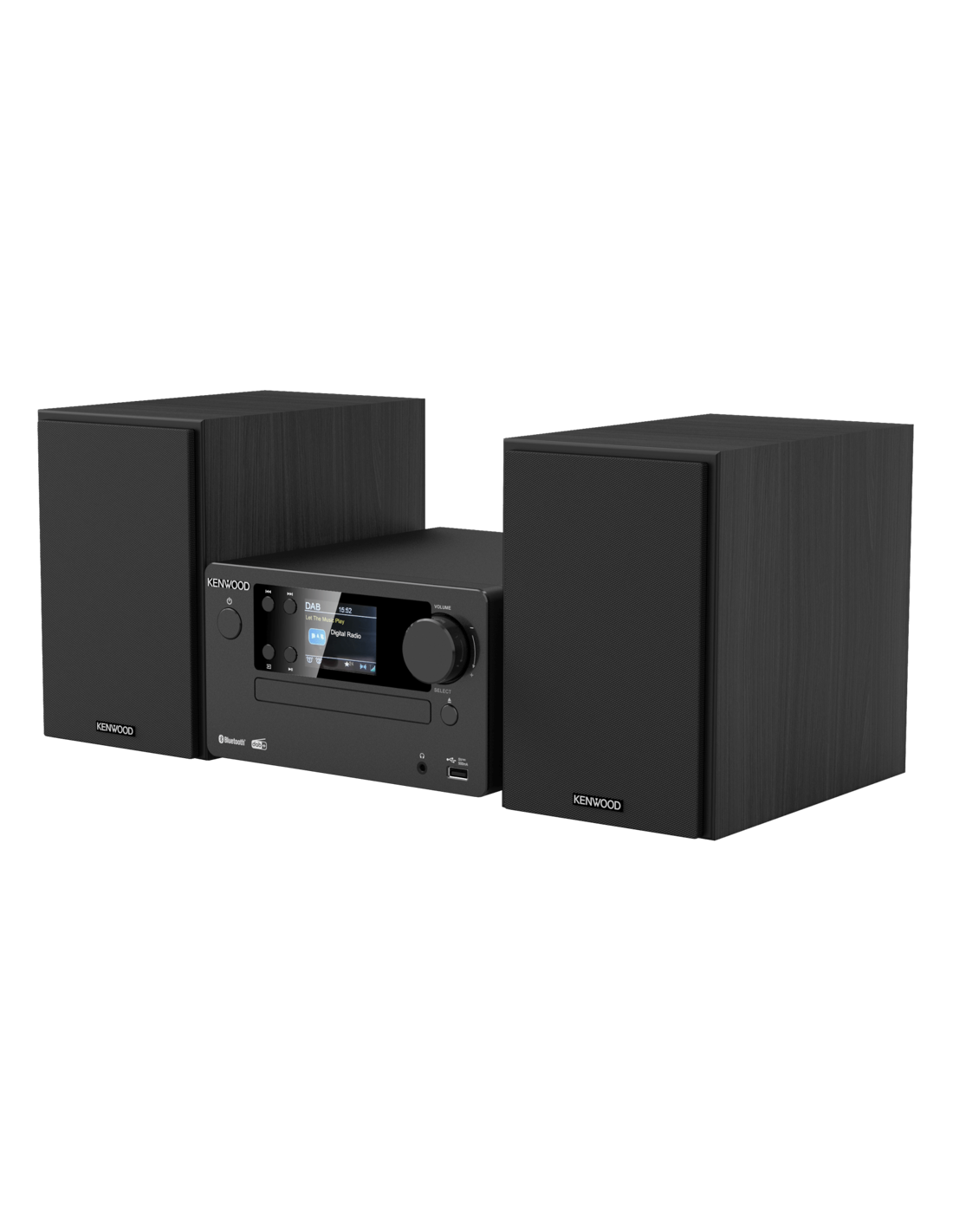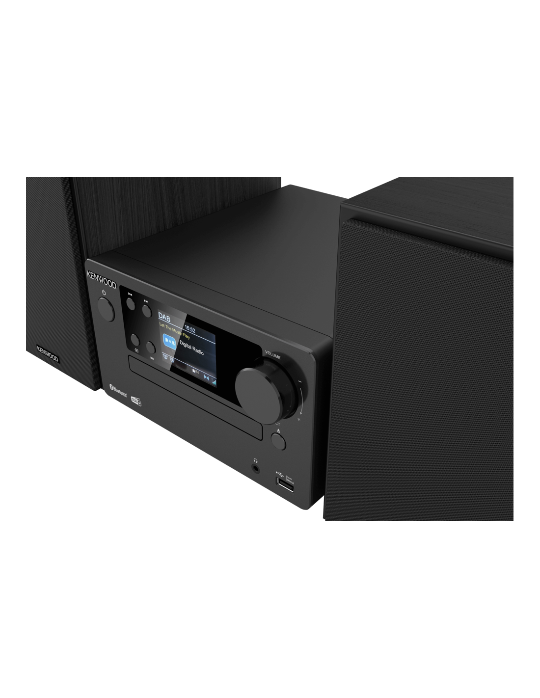 Kenwood Electronics M-725DAB-B. Tipo: Microsistema audio per la casa, Colore del prodotto: Nero. Potenza in uscita (RMS): 50 W, Tipo di speaker: 2-vie, Rapporto segnale/rumore (SNR): 75 dB. Bande del sintonizzatore: DAB+, FM, Particolarità RDS: PTY, Banda FM: 87,5 - 108 MHz. Tipo di display: TFT. Portata Bluetooth: 10 m