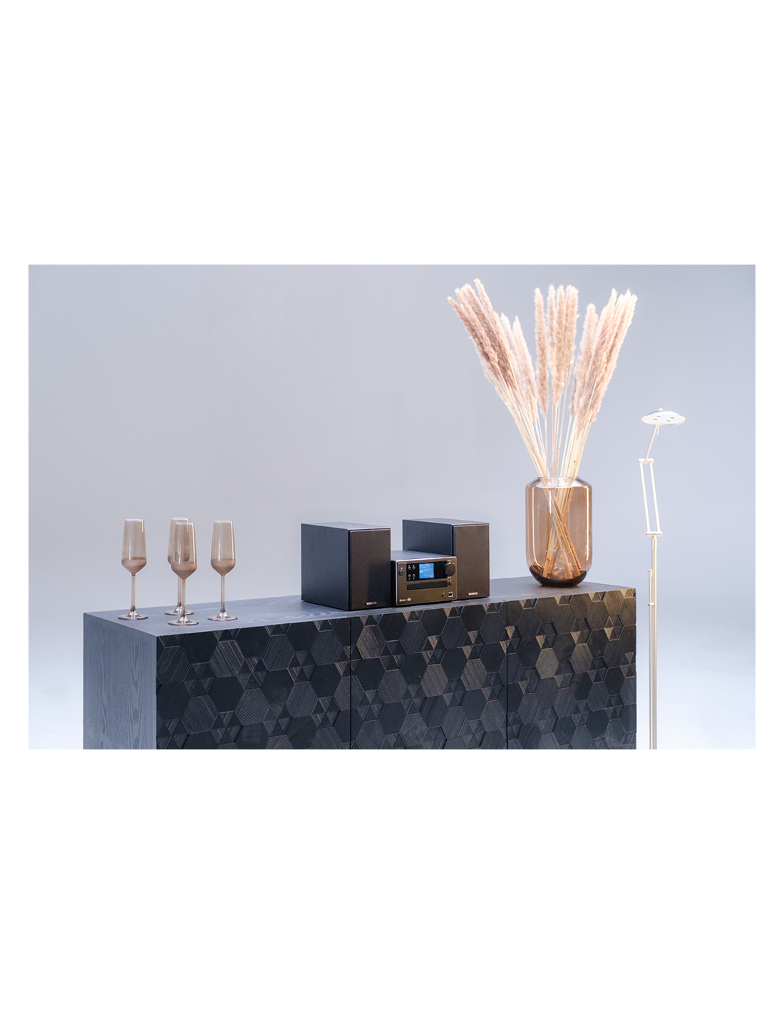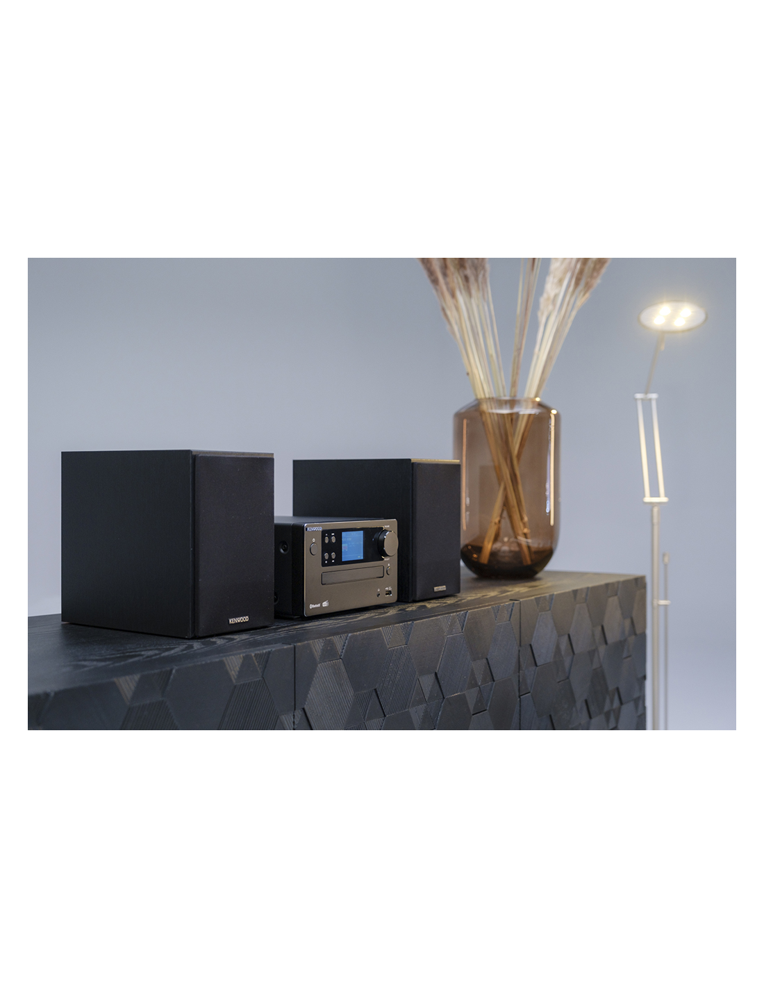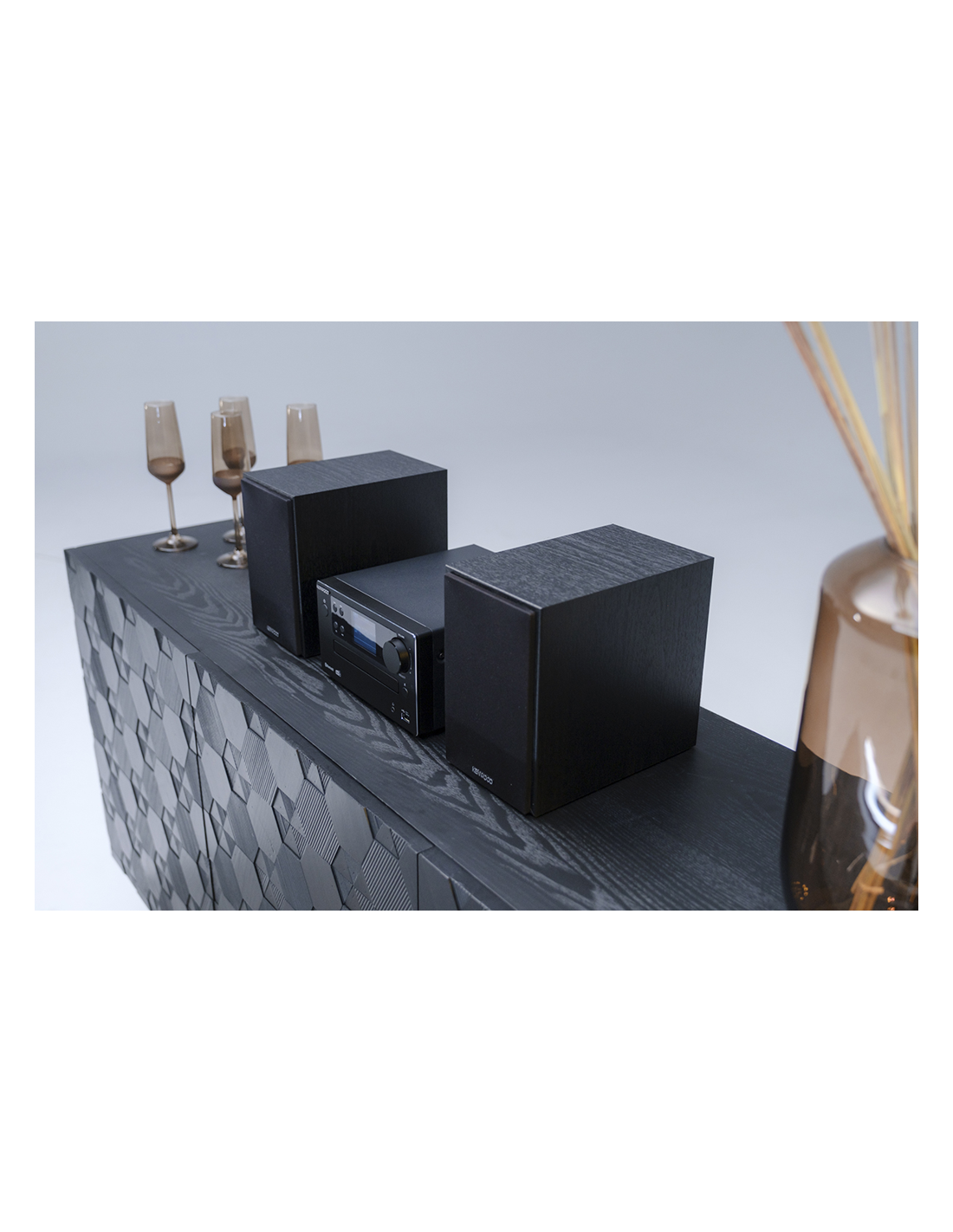 Kenwood Electronics M-725DAB-B. Tipo: Microsistema audio per la casa, Colore del prodotto: Nero. Potenza in uscita (RMS): 50 W, Tipo di speaker: 2-vie, Rapporto segnale/rumore (SNR): 75 dB. Bande del sintonizzatore: DAB+, FM, Particolarità RDS: PTY, Banda FM: 87,5 - 108 MHz. Tipo di display: TFT. Portata Bluetooth: 10 m