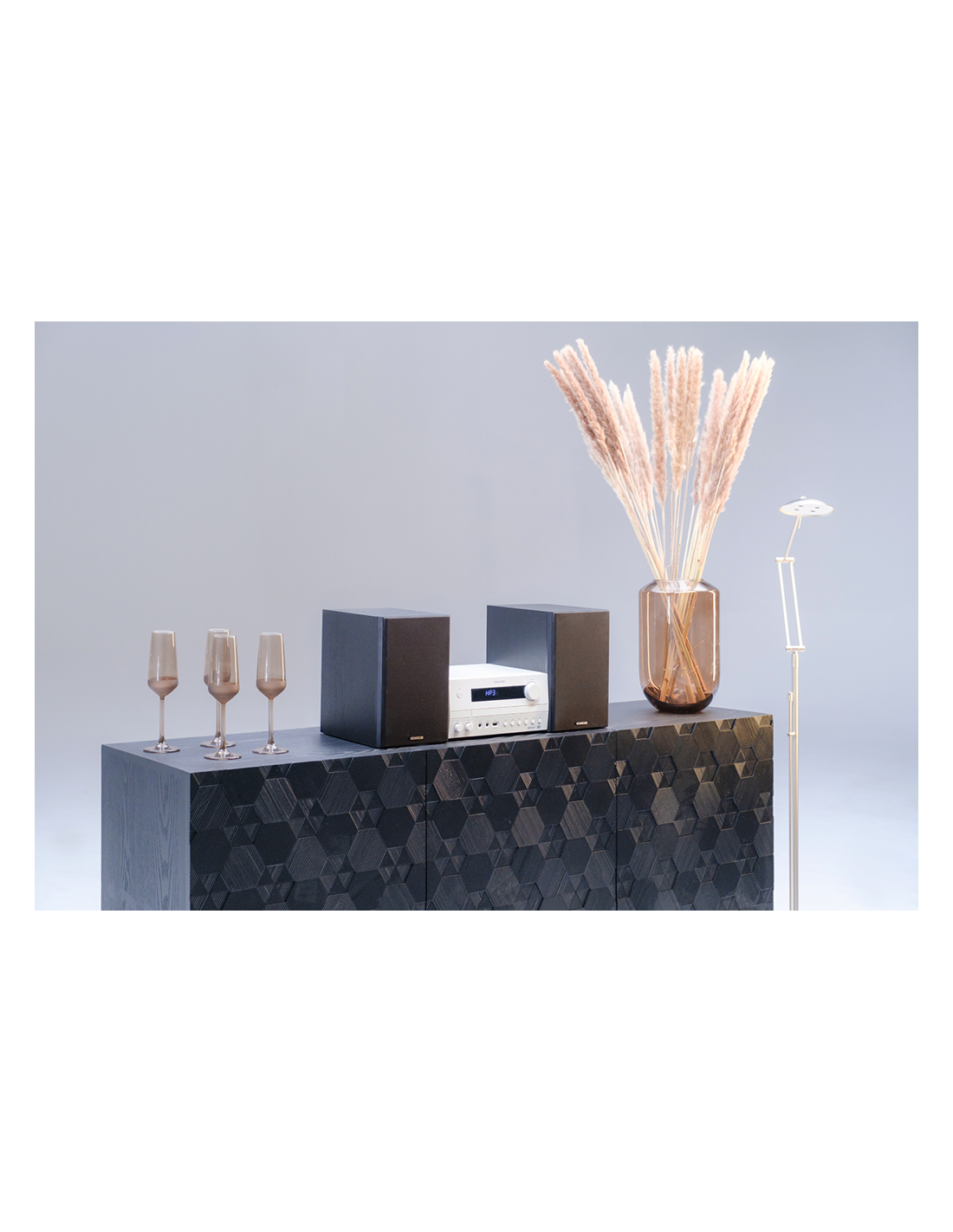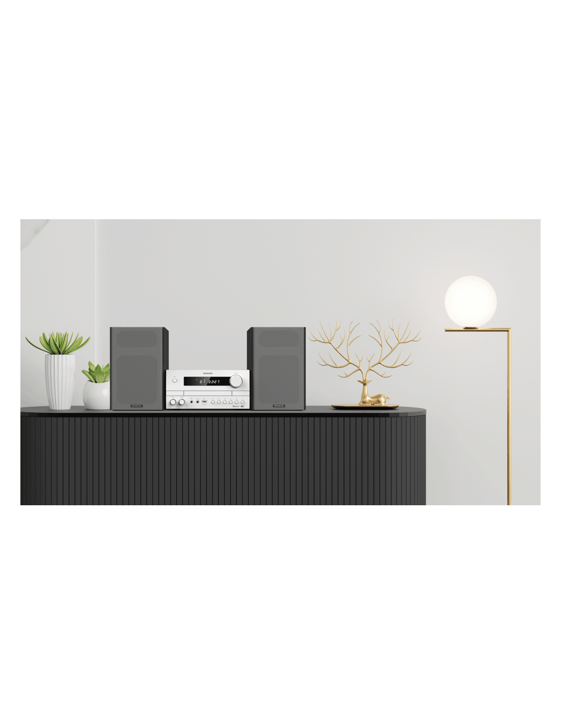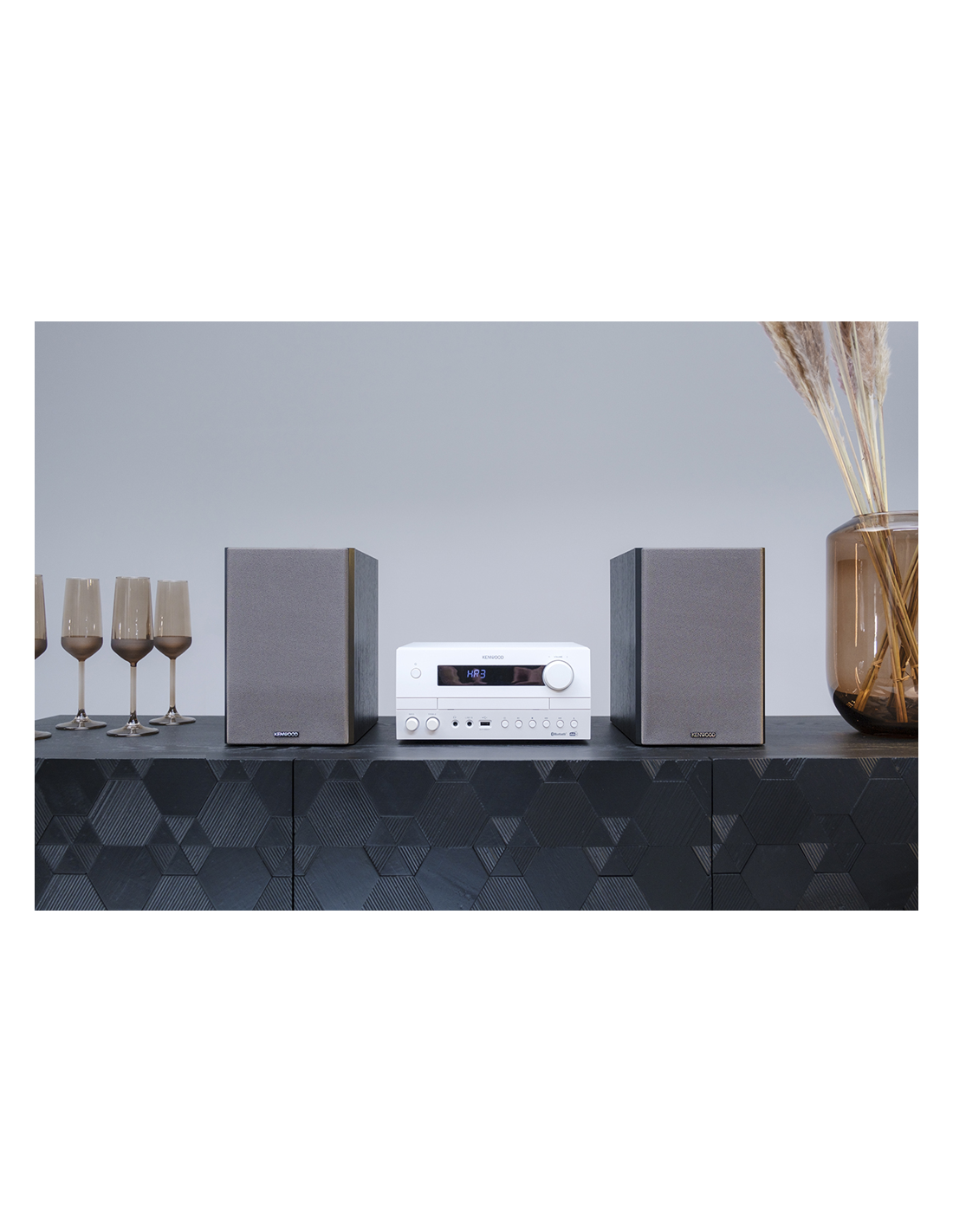 Kenwood M-822DAB. Tipo: Microsistema audio per la casa, Colore del prodotto: Nero, Bianco. Potenza in uscita (RMS): 50 W, Tipo di speaker: 2-vie, Diametro del woofer: 13 cm. Bande del sintonizzatore: DAB, DAB+, FM, Banda FM: 87,5 - 108 MHz. Tipo di display: LCD. Portata Bluetooth: 10 m