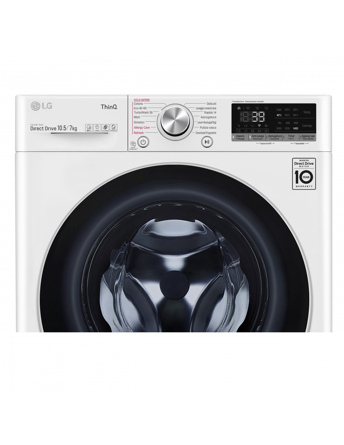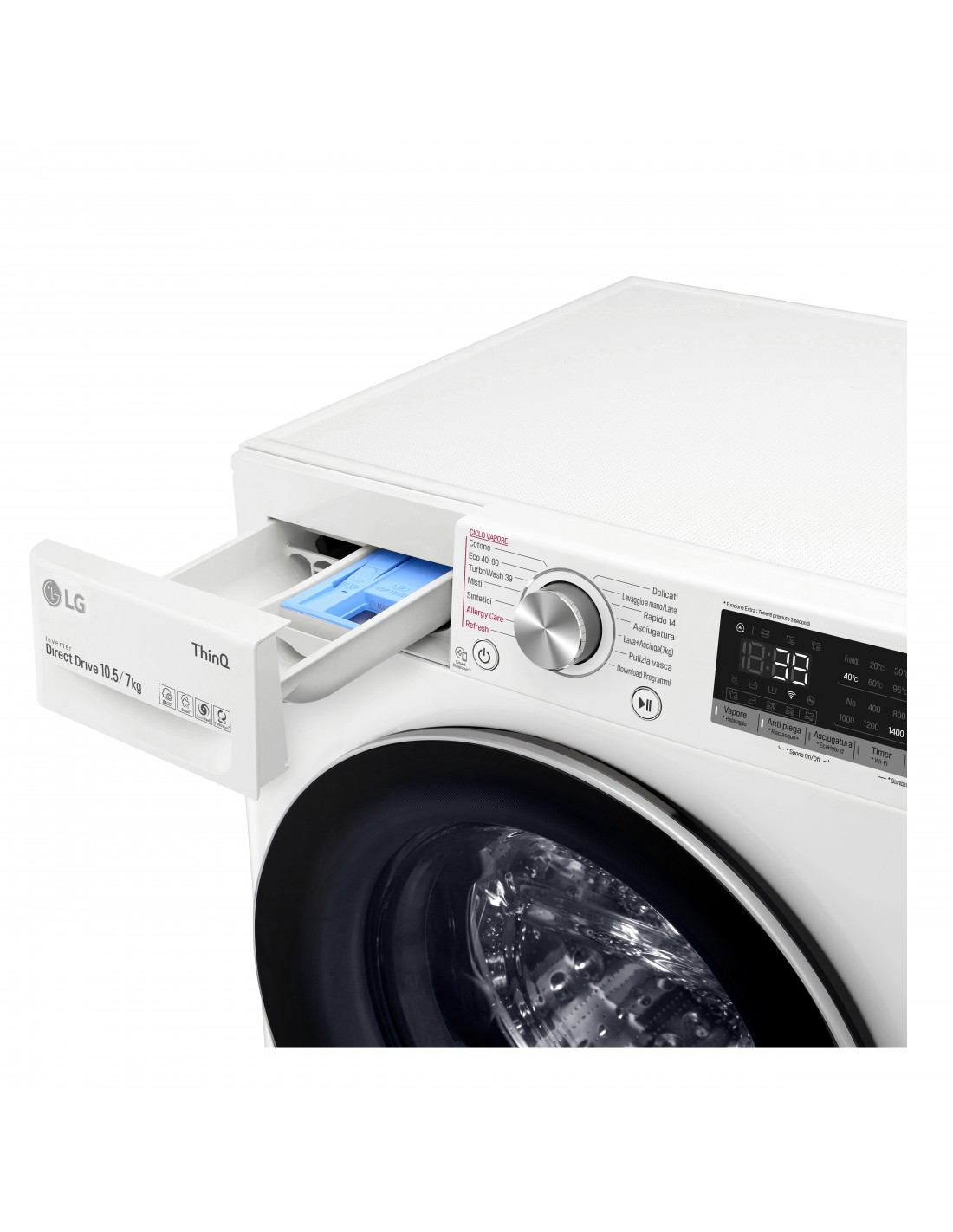 Con TurboWash 360™ il tuo bucato può essere pulito e igienizzato perfettamente in soli 39 minuti. Grazie alla tecnologia 3D Multi Spray a getti multi-direzionali, la lavasciuga raggiunge ogni centimetro del tuo bucato garantendo un pulito profondo e maggiore cura dei tuoi capi.