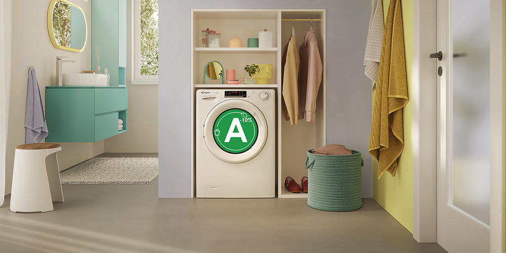 Grazie al ridotto consumo energetico, Candy Smart Pro Inverter è il 10% più efficiente di una lavatrice standard in classe A.