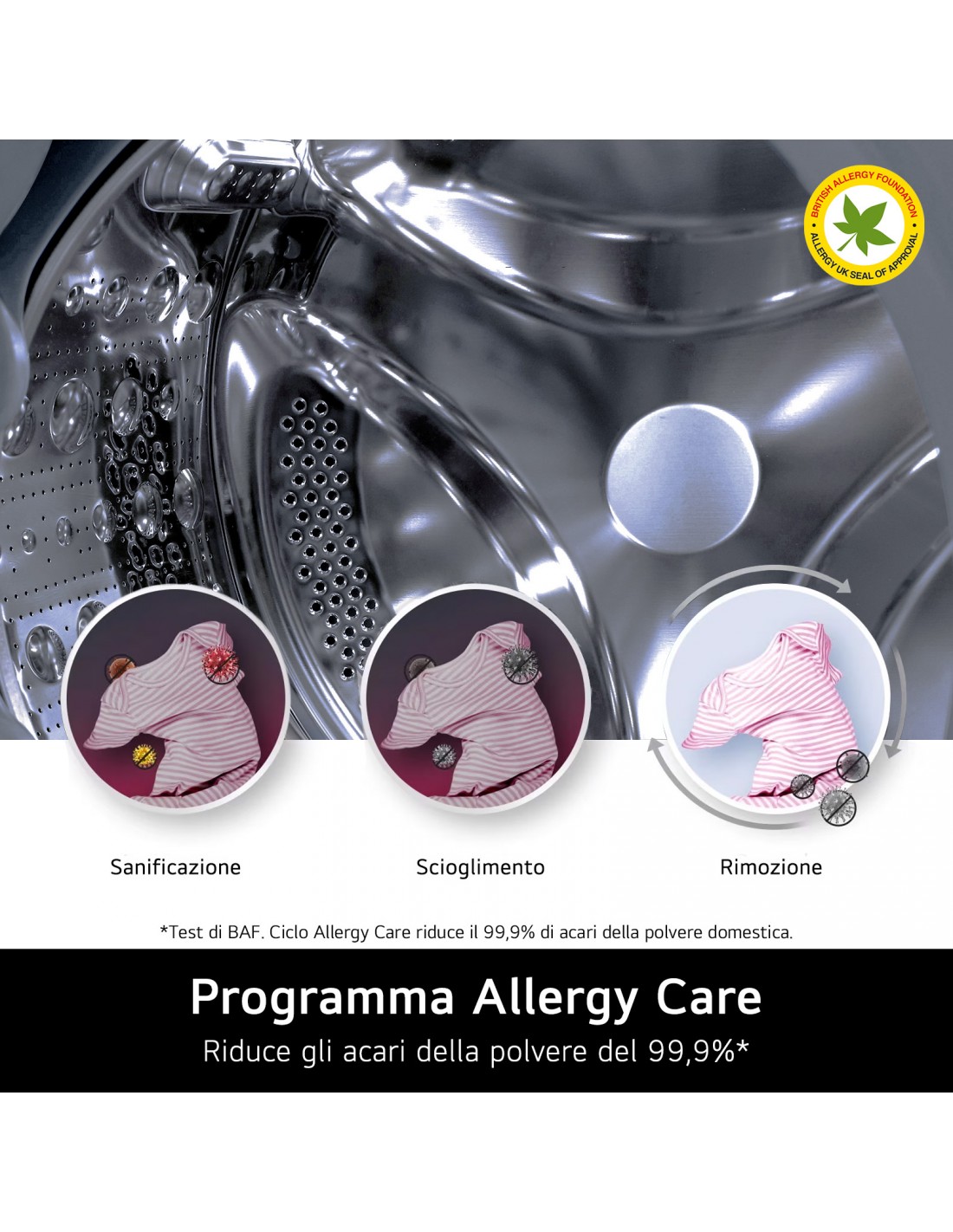 Tecnologie LG (cura dei vestiti) | Allergy Care, DUAL Dry™, Inverter Direct Drive Motor, ThinQ™ |