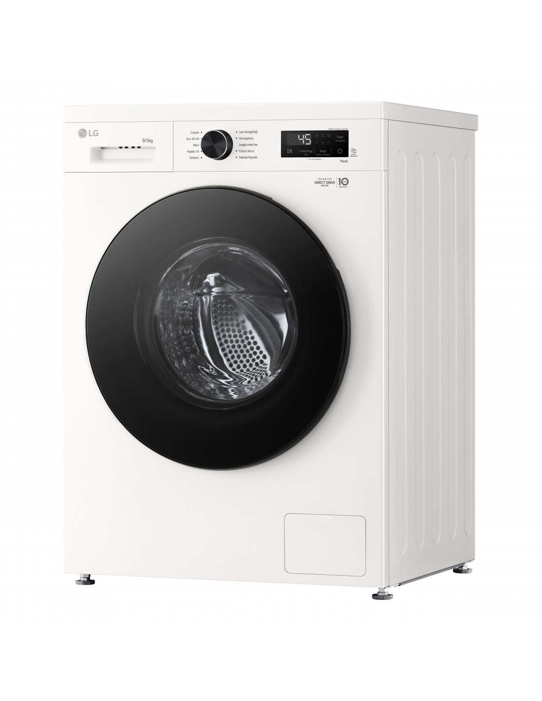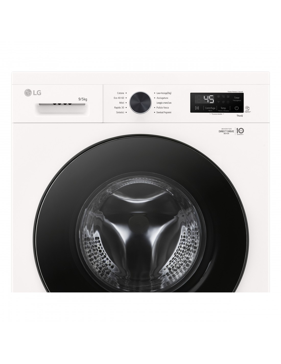 LG W4NX1095NWB Lavasciuga 9/5kg Serie X1, Classe A/E, 6 Motion Direct Drive, Wi-Fi, 1400 giri, Allergy Care, Bianca. Tipo di carica: Caricamento frontale, Posizionamento dell'apparecchio: Libera installazione, Colore del prodotto: Bianco. Capacità di asciugatura: 5 kg, Velocità di centrifuga massima: 1400 Giri/min, Classe di efficienza della centrifuga: B. Angolo di apertura della porta: 150°. Classe di efficienza energetica (lavaggio): A, Classe di efficienza energetica( lavaggio e asciugatura): E, Consumo di acqua (lavaggio): 50 L. Durata della garanzia: 2 anno/i