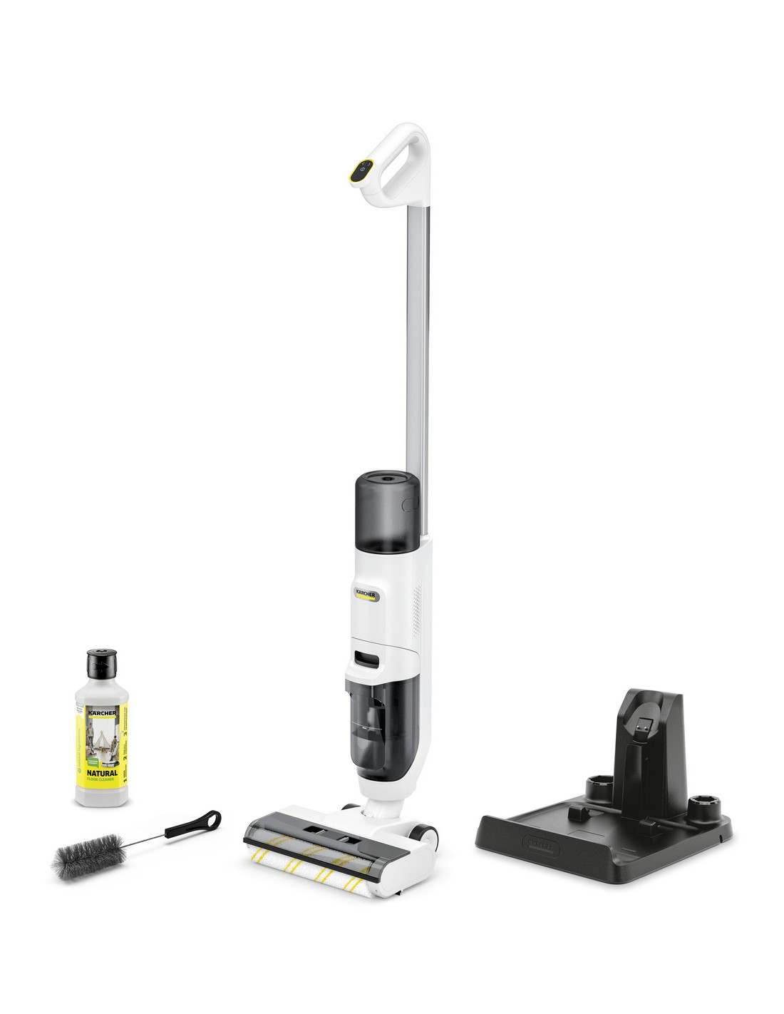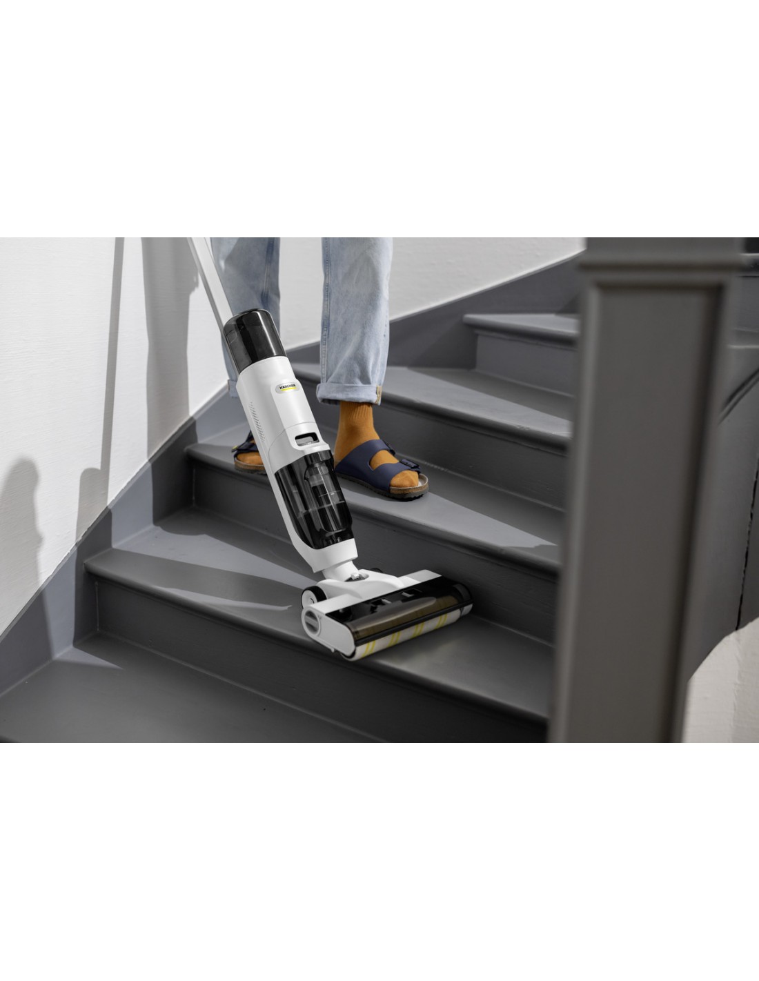 FCV 2 Natural N: la pulizia semplice ed ecologica, grazie al detergente per pavimenti naturale RM 538N! L'aspirapolvere e lavapavimenti 3 in 1 con l'innovativa funzione Xtra!Clean aspira, lava e asciuga, semplificando la pulizia di pavimenti duri, tappeti e rimuove liquidi versati, risparmiando fino al 50% di tempo*. Scegli tra due modalità di pulizia – modalità standard con modalità lavaggio e asciugatura – e affronta qualsiasi sporco: polvere, peli di animali o macchie ostinate. La tecnologia Hygienic!Spin all'avanguardia con un massimo di 500 giri del rullo al minuto non solo garantisce risultati di pulizia perfetti, ma elimina anche fino al 99% dei batteri** per un igiene impeccabile. Inoltre, la batteria a lunga durata arriva fino a 25 minuti di autonomia per pulire fino a 110 mq ininterrottamente e grazie alla funzione autopulente integrata, avrai la massima comodità, per una pulizia facile, senza mai entrare in contatto con lo sporco.