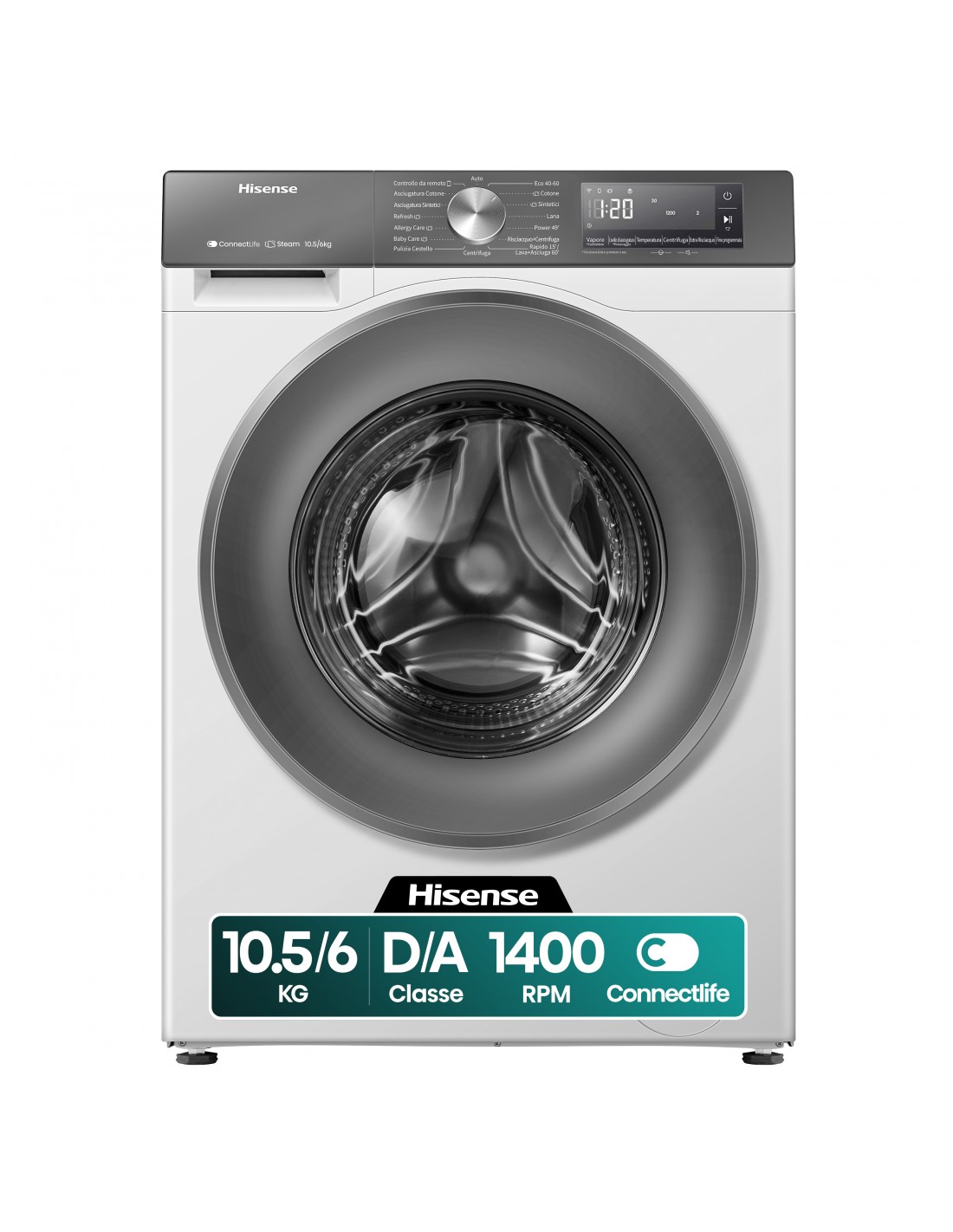 Grazie ai continui miglioramenti nell'efficienza energetica, puoi ottenere tutti i vantaggi di una lavatrice moderna utilizzando molta meno energia. Ciò significa che riduci le bollette dell'elettricità e fai un passo avanti per aiutare l'ambiente. * Sulla base della tecnologia di test CVC, confronto tra Hisense WD3S1043BW3 e WD3Q1043BW con i suoi parametri di lavaggio migliorati, rendendolo fino al 20% più efficiente di quanto richiesto per la classe di efficienza energetica A. Testato secondo IEC 60456-2010 per il programma Eco 40-60. I risultati individuali possono variare.