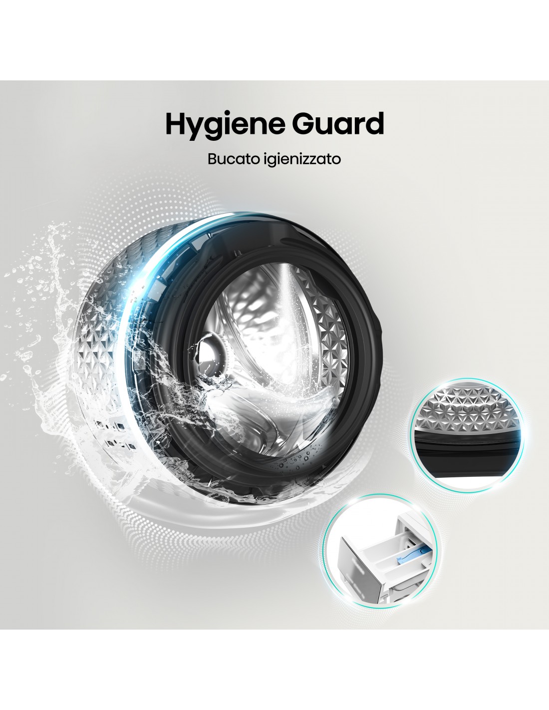 Con il materiale antibatterico della guarnizione in gomma, ti offre risultati di lavaggio più salutari. E la funzione Pure Jet può lavare via le macchie sullo sportello e sul soffietto.