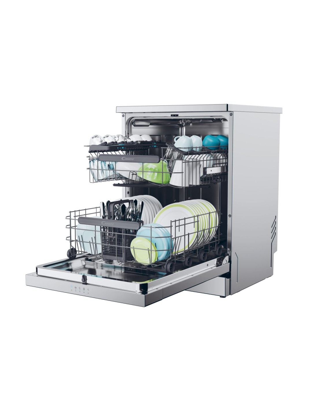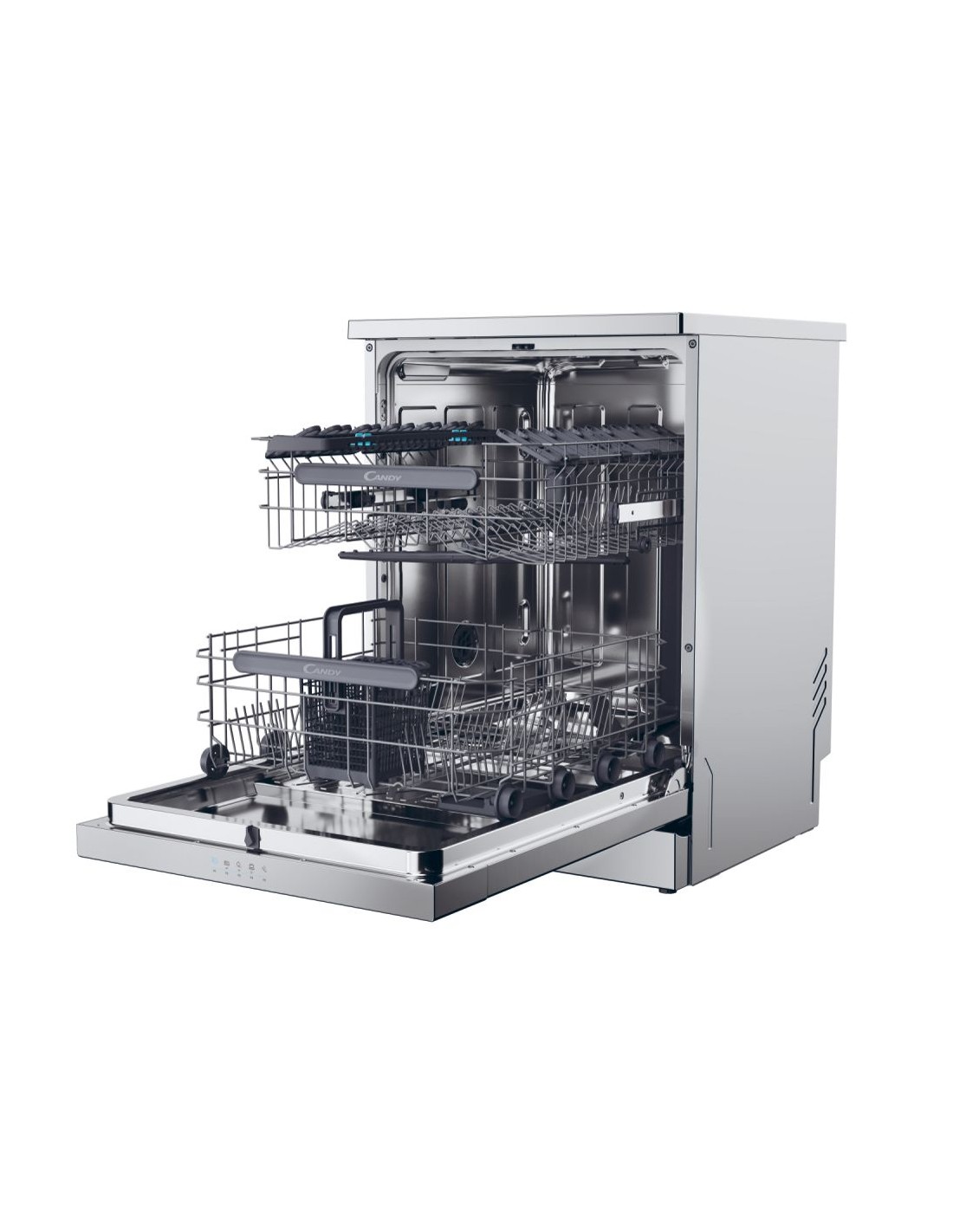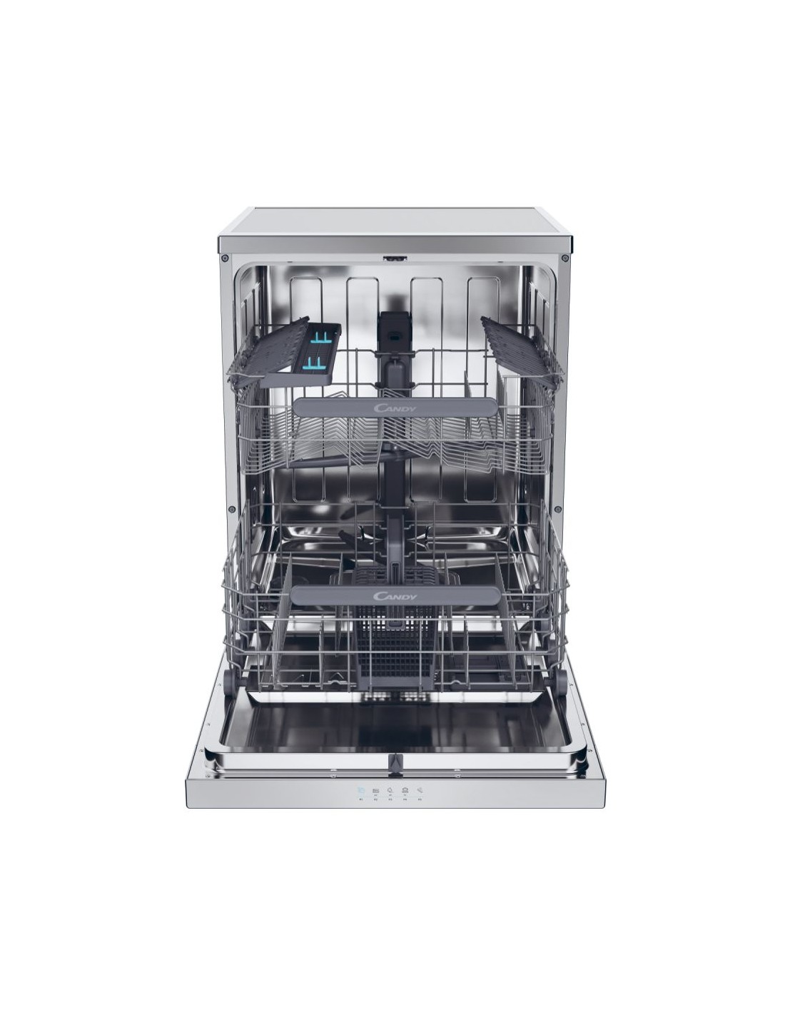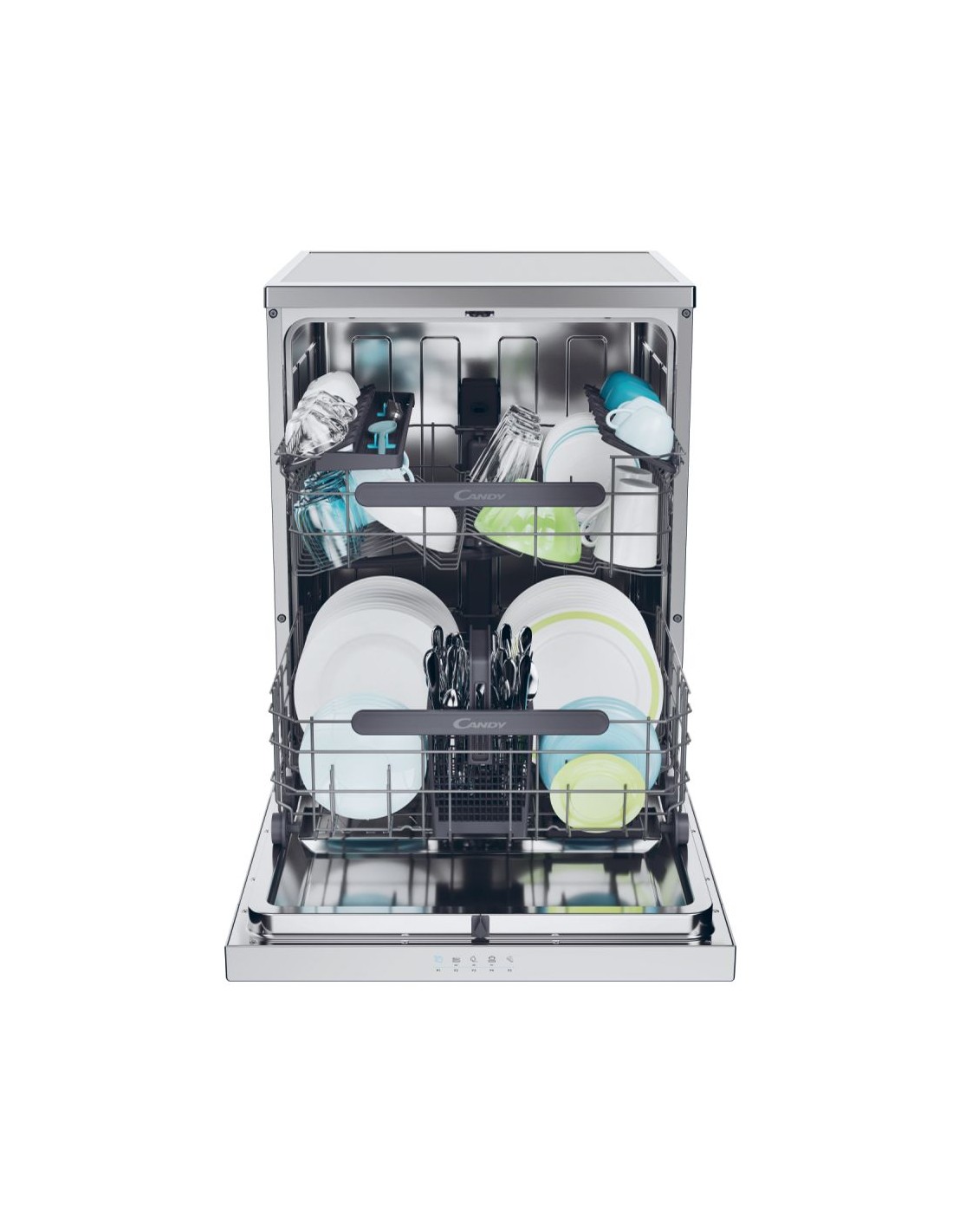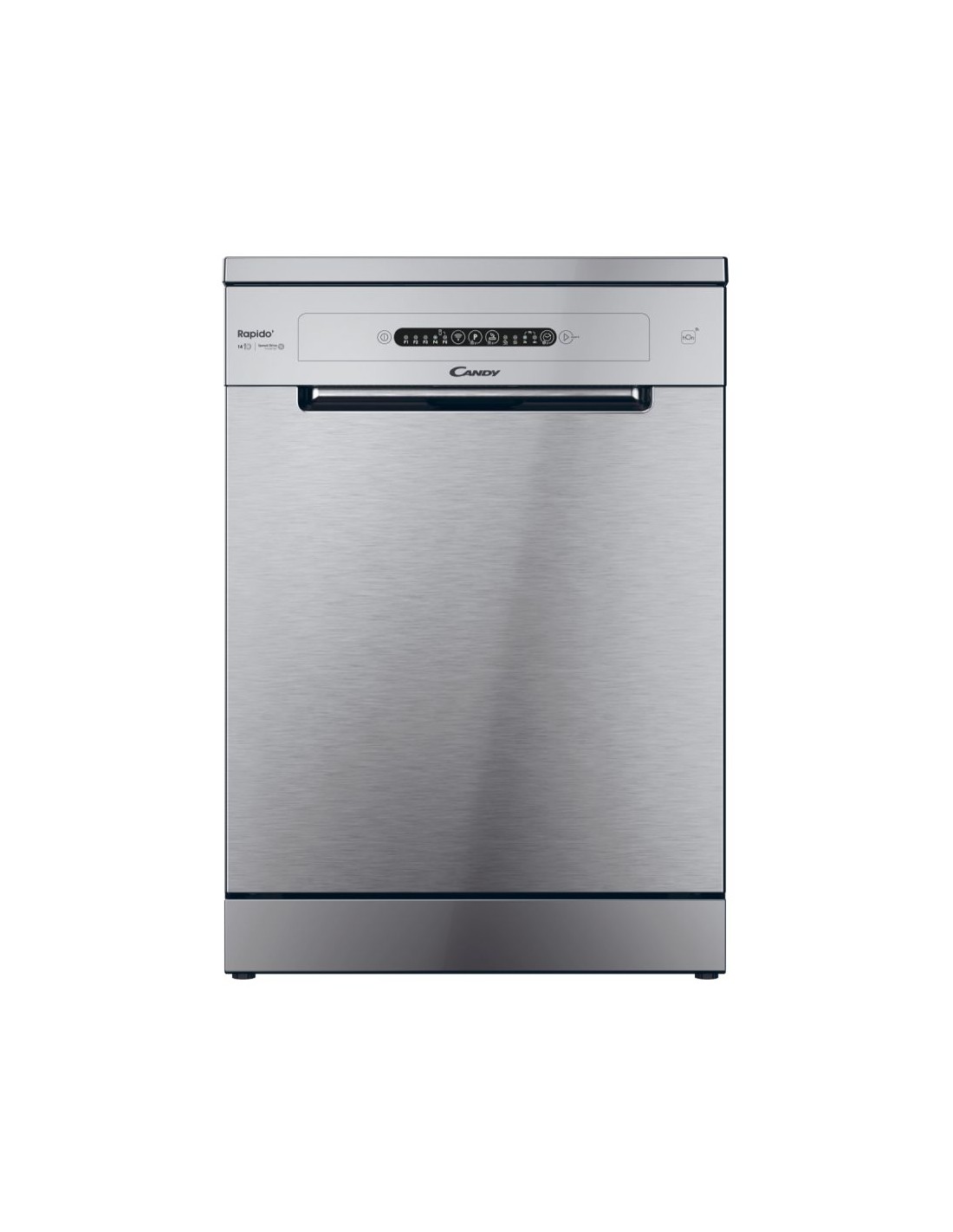 Candy CF 4E7L0X. Posizionamento dell'apparecchio: Libera installazione, Dimensione: Dimensione massima (60 cm), Colore della porta: Acciaio inossidabile. Numero di coperti: 14 coperti, Classe emissione rumore: C, Emissione acustica: 47 dB. Applicazioni per il controllo supportate: hOn. Classe efficienza energetica: E, Consumo di acqua per ciclo: 10,9 L, Consumo energetico per 100 cicli: 95 kWh. Larghezza: 597 mm, Profondità: 598 mm, Altezza: 850 mm