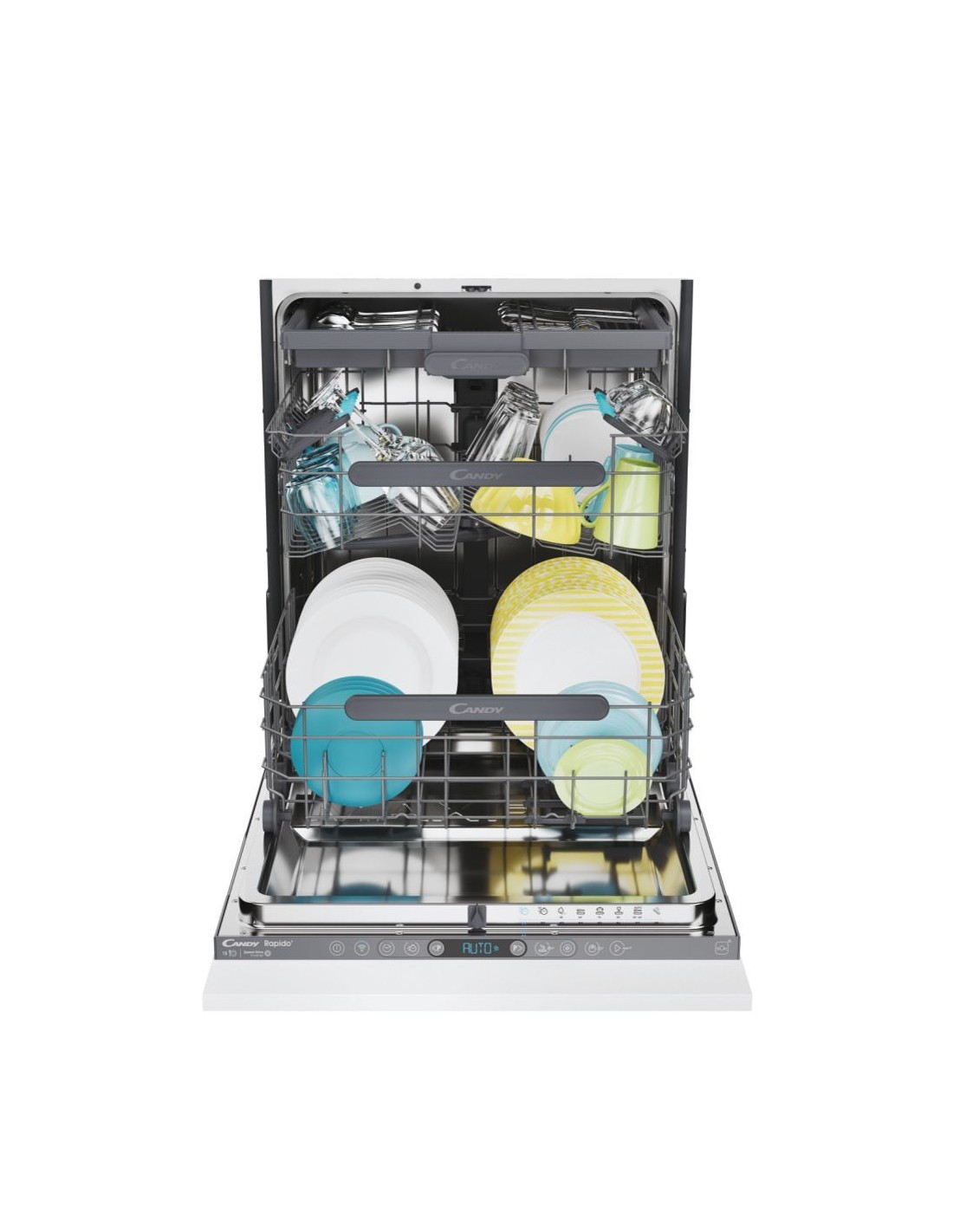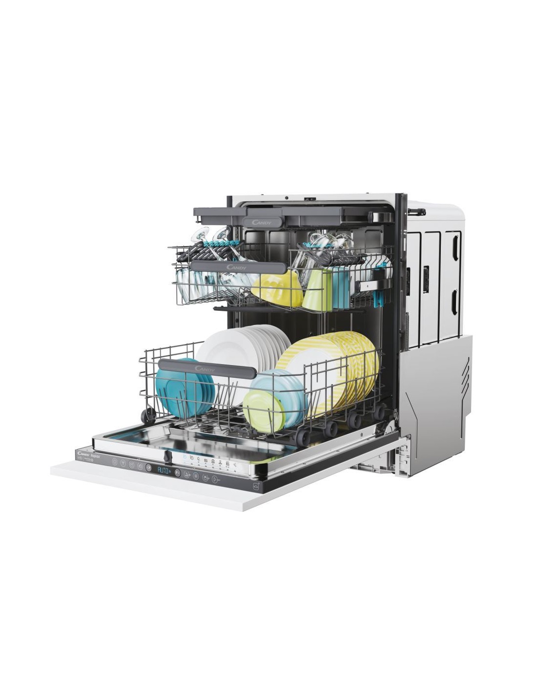 Candy RapidÓ CS 5C4F1A. Posizionamento dell'apparecchio: A scomparsa totale, Dimensione: Dimensione massima (60 cm), Colore pannello di controllo: Antracite. Numero di coperti: 15 coperti, Classe emissione rumore: B, Emissione acustica: 44 dB. Applicazioni per il controllo supportate: hOn. Classe efficienza energetica: C, Consumo di acqua per ciclo: 9,5 L, Consumo energetico per 100 cicli: 75 kWh. Larghezza: 597 mm, Profondità: 555 mm, Peso: 38,4 kg
