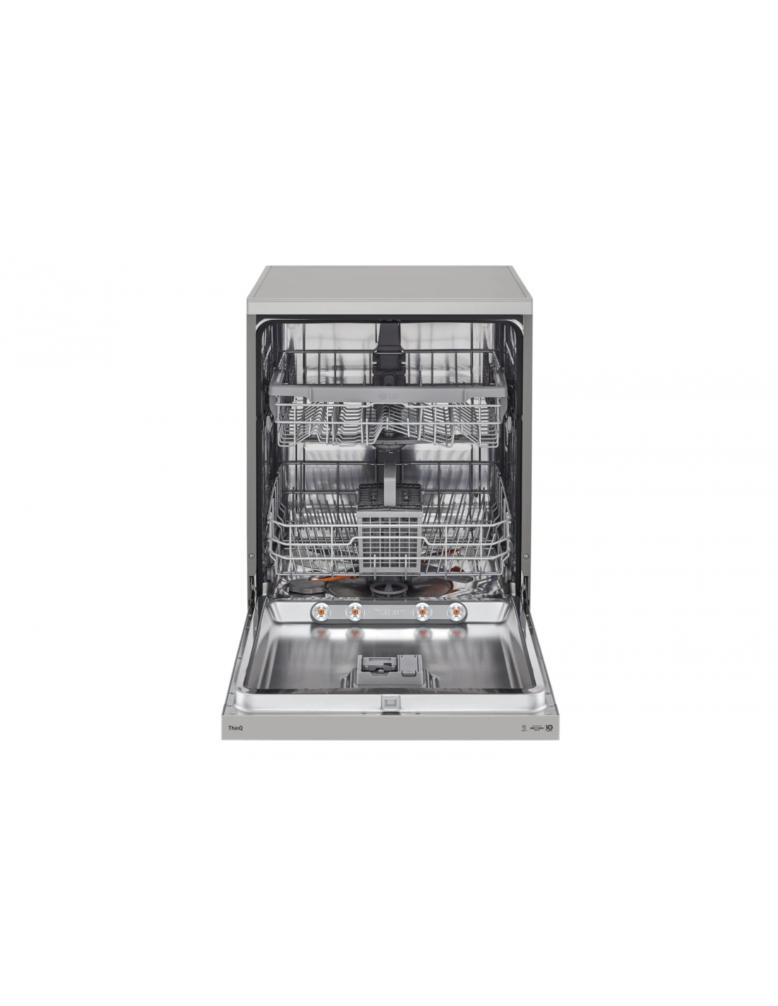 LG DF242FPS. Posizionamento dell'apparecchio: Libera installazione, Dimensione: Dimensione massima (60 cm), Colore della porta: Acciaio inox. Numero di coperti: 14 coperti, Classe emissione rumore: C, Emissione acustica: 46 dB. Regolazione piedini: 3 cm. Classe efficienza energetica: D, Consumo di acqua per ciclo: 9,9 L, Consumo energetico per 100 cicli: 85 kWh. Larghezza: 600 mm, Profondità: 600 mm, Altezza: 850 mm
