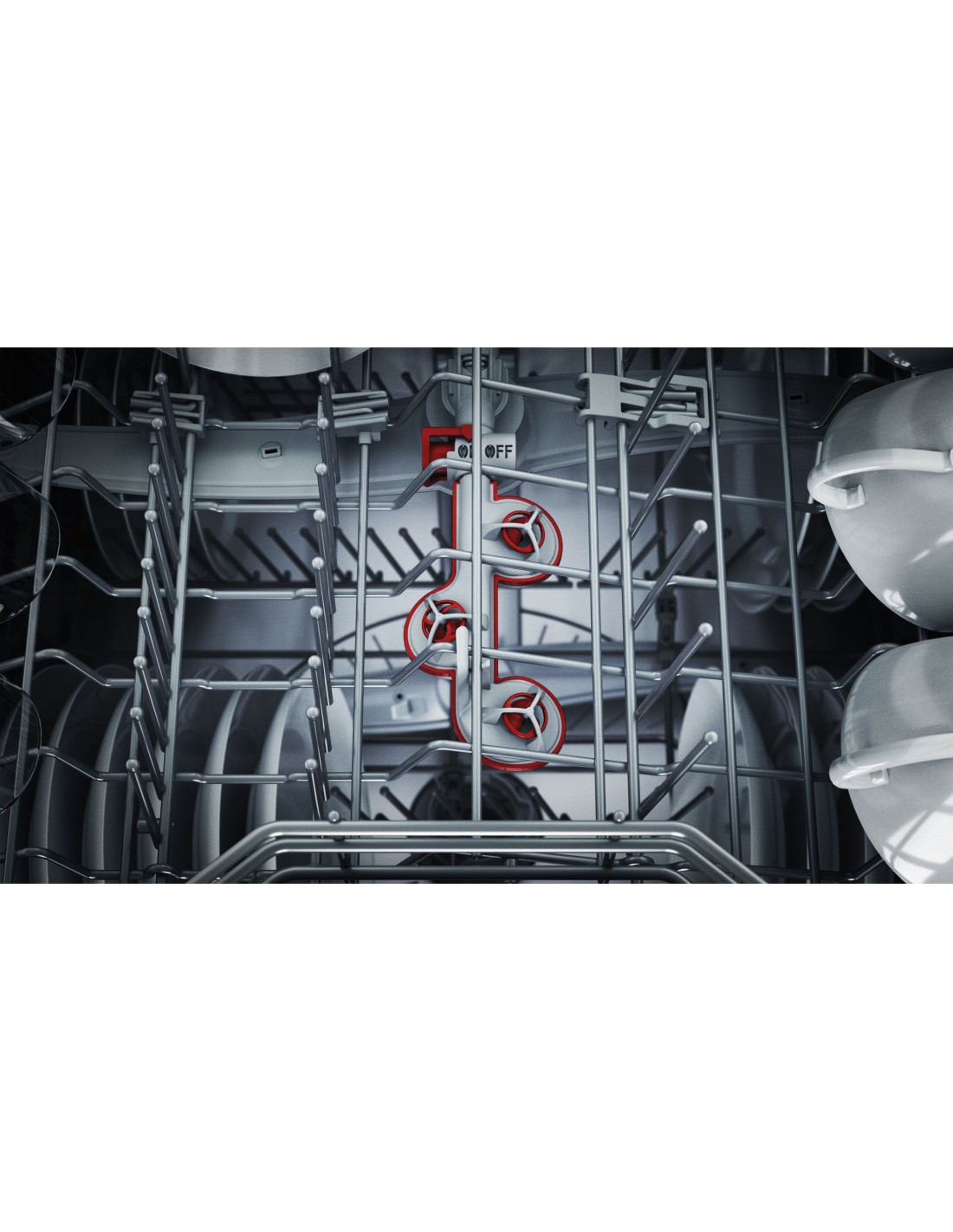 Puoi finalmente dire addio a residui di cibo, grasso e incrostazioni: Extra Clean Zone pulisce a fondo le stoviglie caricate nel cestello superiore. Tre getti rotanti garantiscono un lavaggio più intenso. Basta premere un pulsante per attivare questa funzione.