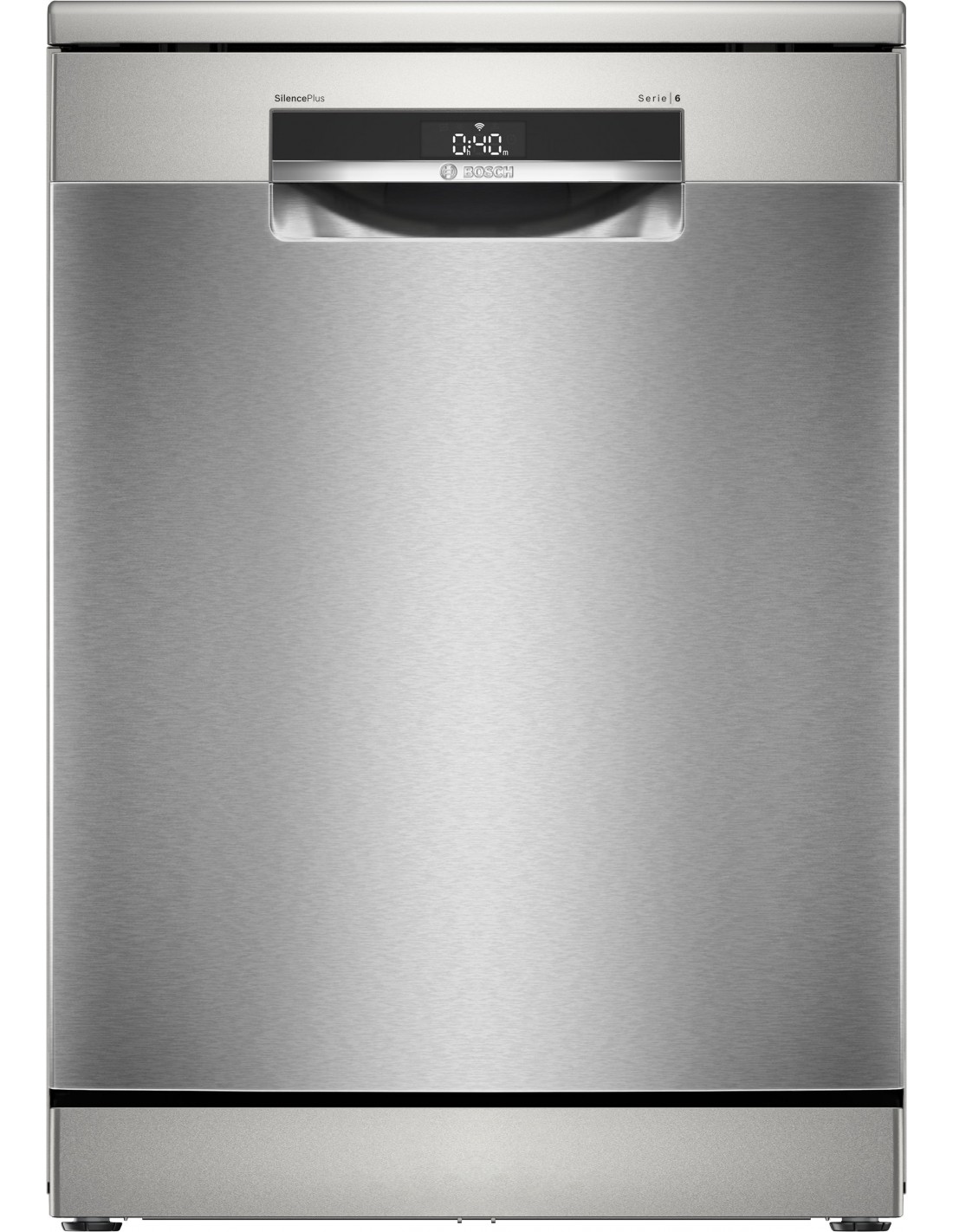 Bosch Serie 6 SMS6ECI15E Lavastoviglie da libera installazione 14 coperti Acciaio spazzolato anti-impronta Classe A. Posizionamento dell'apparecchio: Libera installazione, Dimensione: Dimensione massima (60 cm), Colore della porta: Acciaio inox. Numero di coperti: 14 coperti, Classe emissione rumore: B, Emissione acustica: 42 dB. Regolazione piedini: 2 cm, Applicazioni per il controllo supportate: Bosch Home Connect. Classe efficienza energetica: A, Consumo di acqua per ciclo: 9 L, Consumo energetico per 100 cicli: 54 kWh. Larghezza: 600 mm, Profondità: 600 mm, Altezza: 845 mm