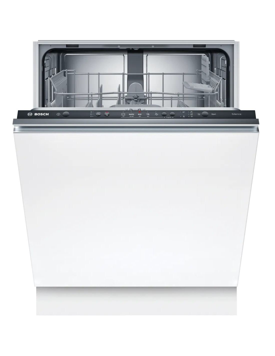Bosch Serie 2 SMV25AX06E. Posizionamento dell'apparecchio: A scomparsa totale, Dimensione: Dimensione massima (60 cm), Colore pannello di controllo: Nero. Numero di coperti: 12 coperti, Classe emissione rumore: C, Emissione acustica: 48 dB. Regolazione piedini: 6 cm. Classe efficienza energetica: E, Consumo di acqua per ciclo: 9,5 L, Consumo energetico per 100 cicli: 92 kWh. Larghezza: 598 mm, Profondità: 550 mm, Altezza: 815 mm