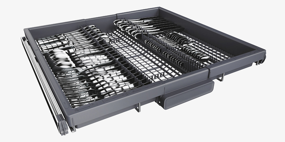 Il terzo cesto della nuova Candy Rapido' è dotato di una smart legenda, che indica chiaramente dove posizionare le posate per ottenere i migliori risultati di pulizia.