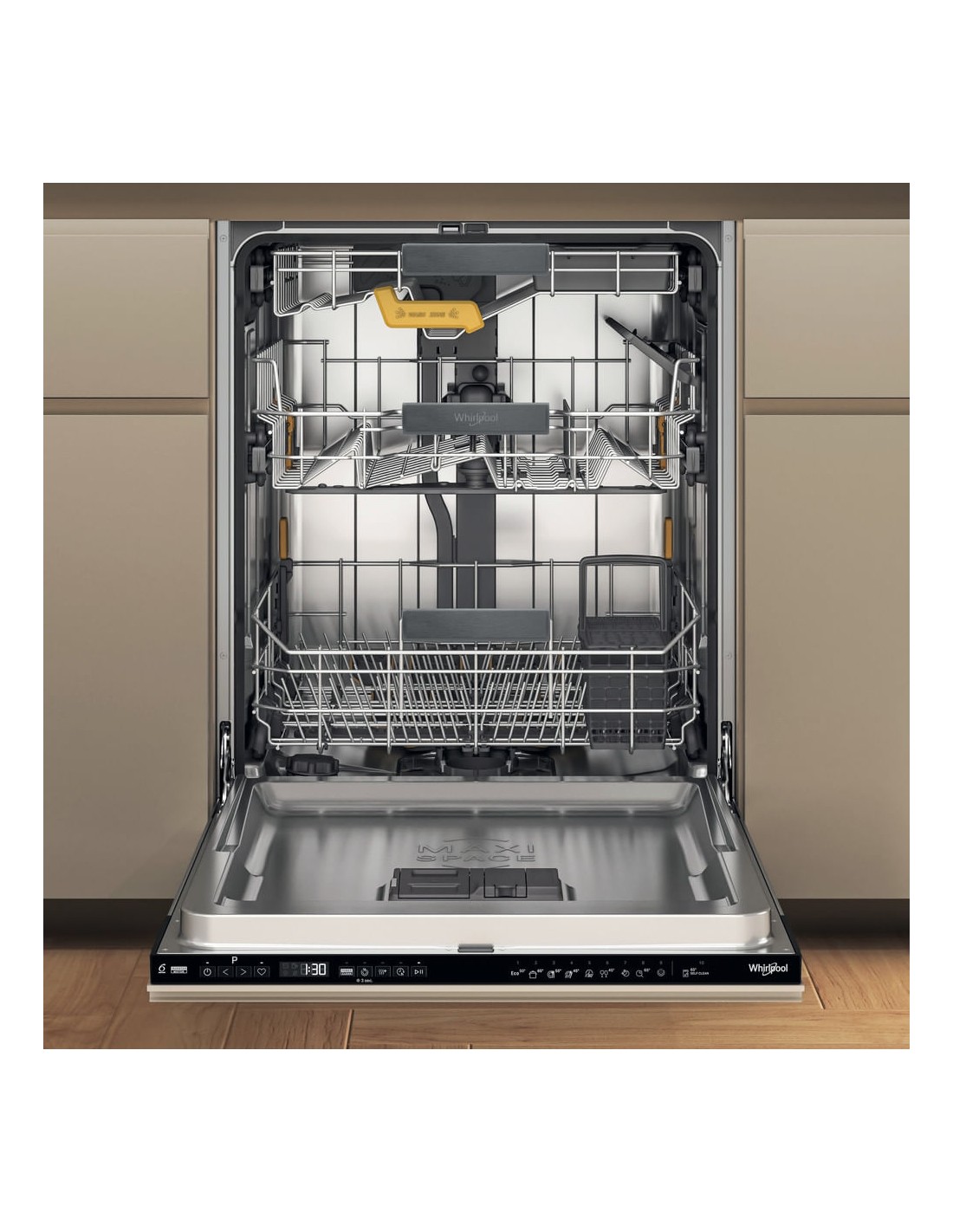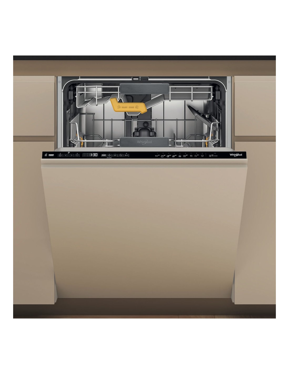 Lavastoviglie Whirlpool con 10 programmi di lavaggio che ti permettono di scegliere sempre quello che meglio soddisfa le tue esigenze.