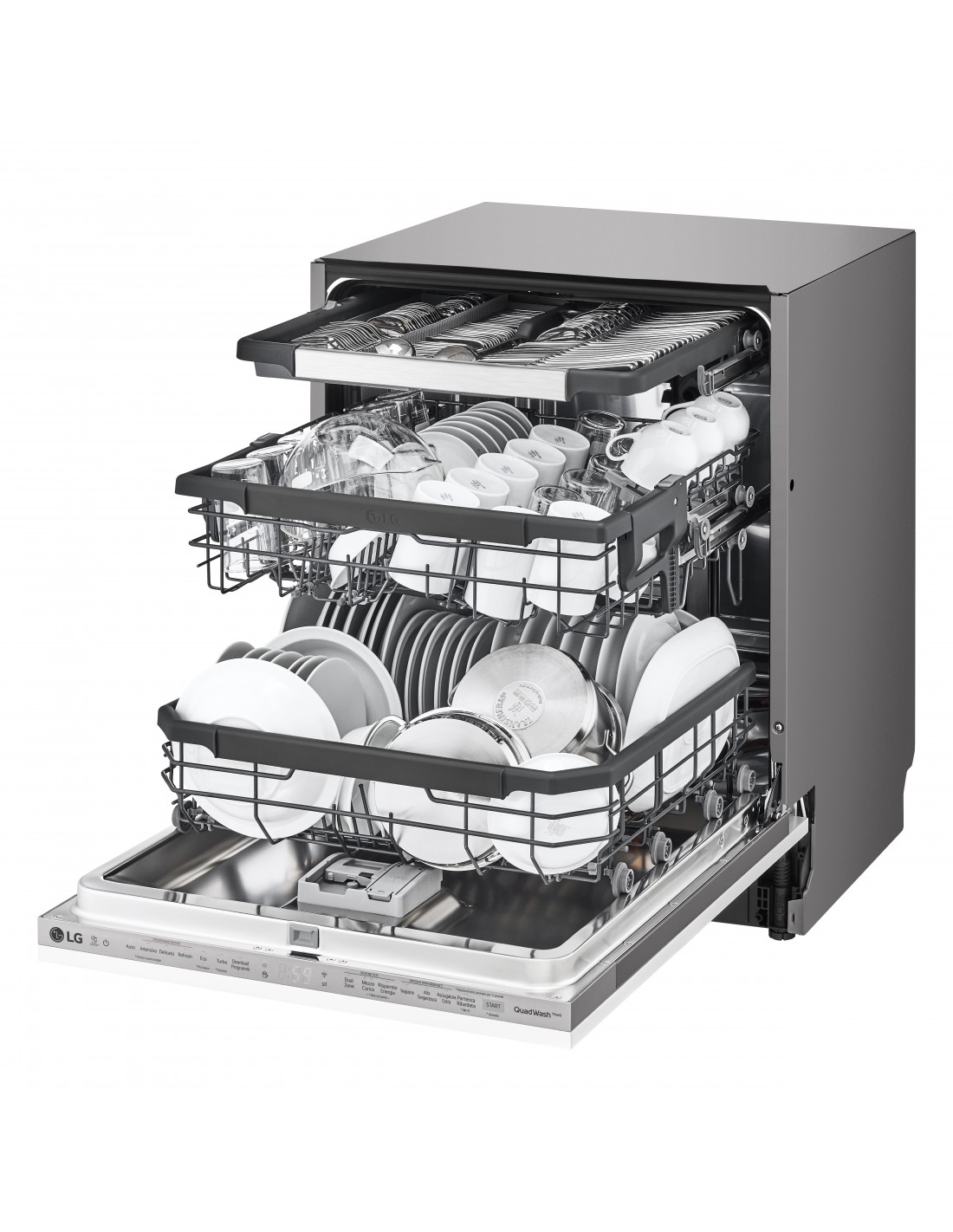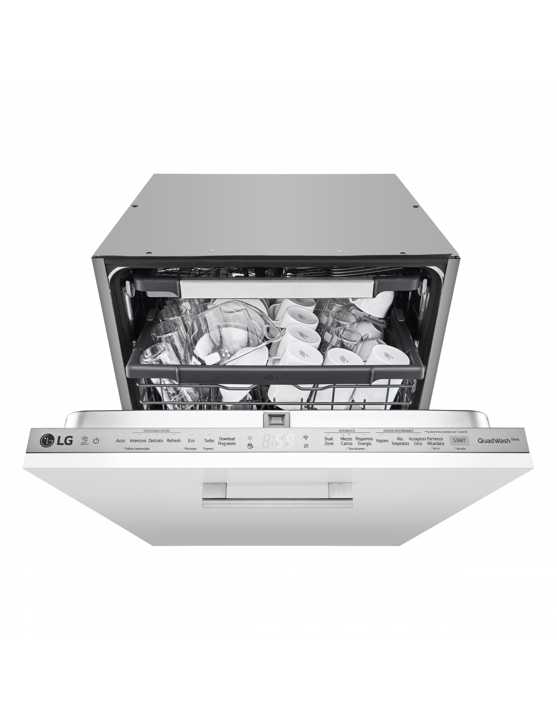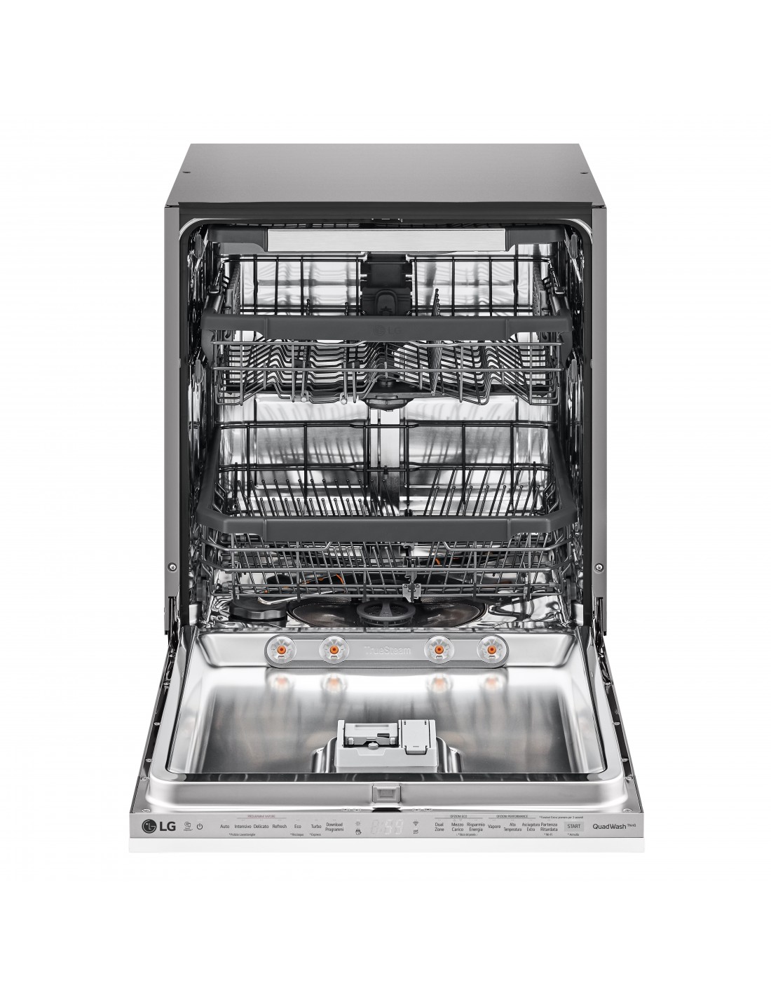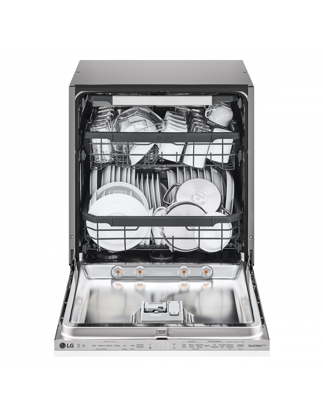 Collega la lavastoviglie al Wi-Fi di casa e scarica l'app LG ThinQ sul tuo smartphone per gestirla comodamente dal tuo smartphone. Puoi scaricare nuovi programmi di lavaggio e perfino configurare le opzioni di pulizia. Inoltre, dopo 30 cicli di lavaggio riceverai un avviso che ti ricorderà di effettuare la pulizia della lavastoviglie tramite l'apposito programma, in modo da mantenere le prestazioni sempre al top.