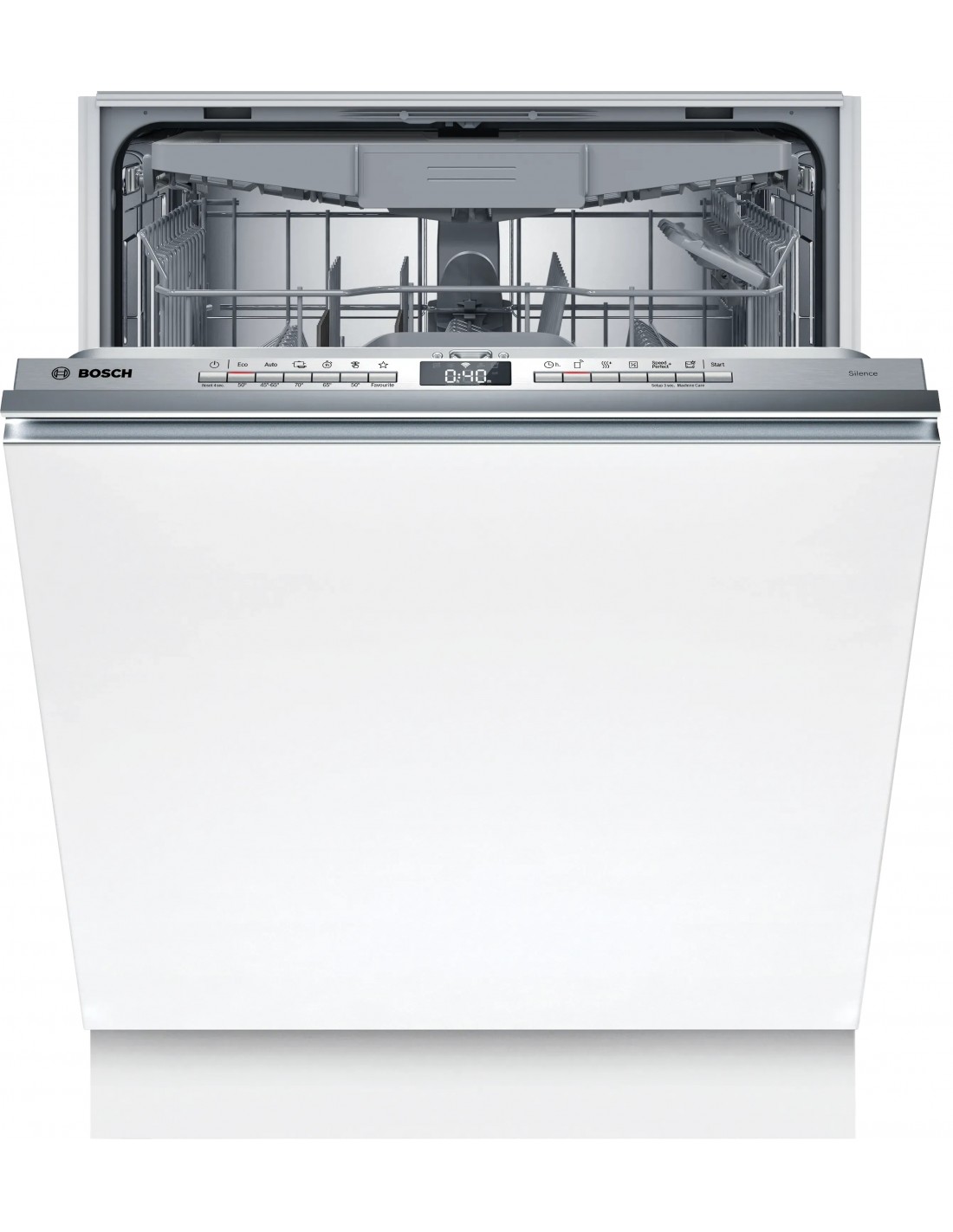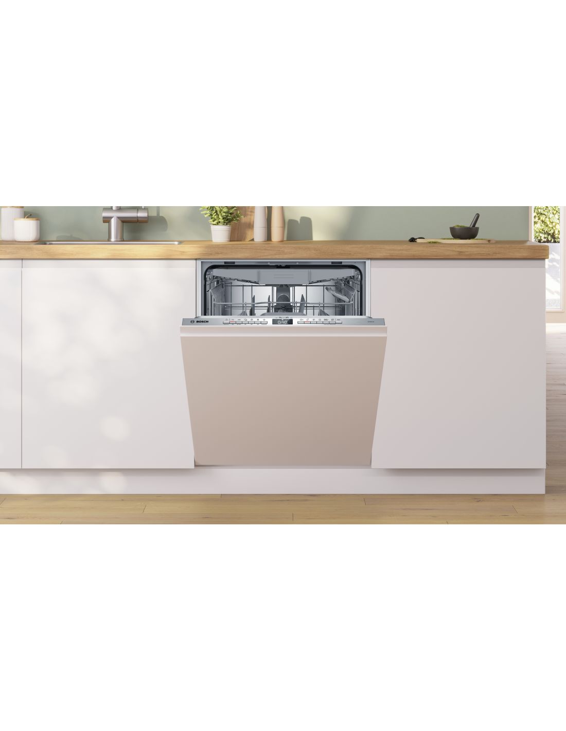Bosch Serie 4 SMV4HVX14E. Posizionamento dell'apparecchio: A scomparsa totale, Dimensione: Dimensione massima (60 cm), Tipo di controllo: Pulsanti. Numero di coperti: 14 coperti, Classe emissione rumore: C, Emissione acustica: 46 dB. Regolazione piedini: 6 cm, Applicazioni per il controllo supportate: Home Connect. Classe efficienza energetica: C, Consumo di acqua per ciclo: 9 L, Consumo energetico per 100 cicli: 75 kWh. Larghezza: 598 mm, Profondità: 550 mm, Altezza: 815 mm