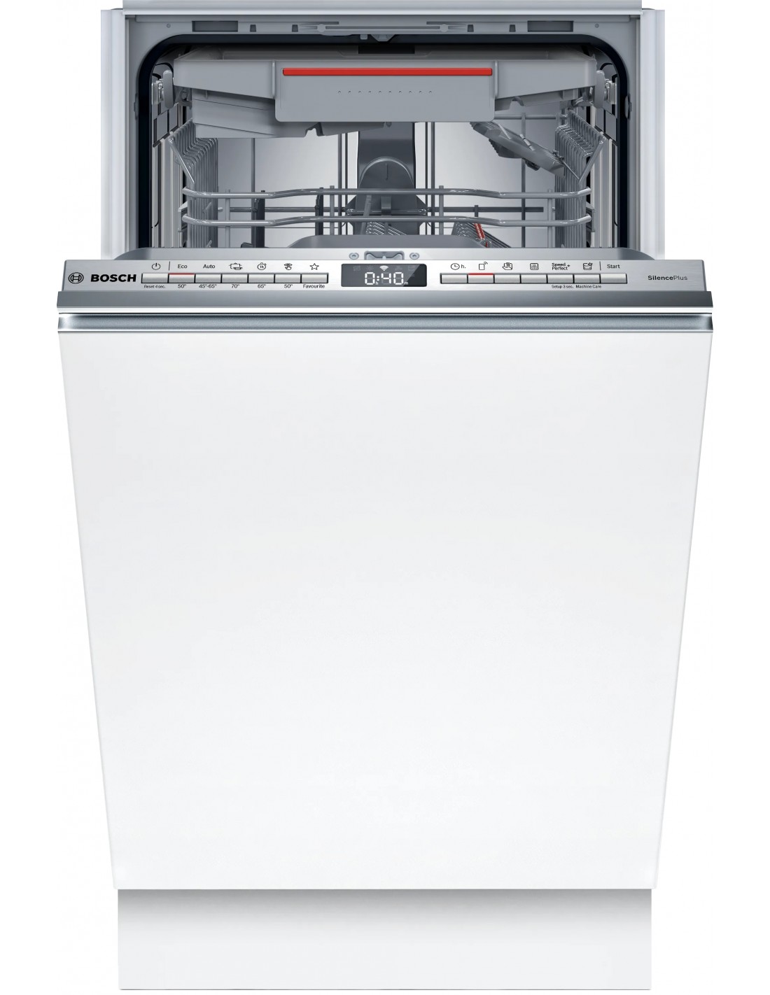 Bosch Serie 4 SPV4EMX17E. Posizionamento dell'apparecchio: A scomparsa totale, Dimensione: Compatta (45 cm), Colore pannello di controllo: Acciaio inox. Numero di coperti: 10 coperti, Classe emissione rumore: B, Emissione acustica: 44 dB. Regolazione piedini: 6 cm, Applicazioni per il controllo supportate: Home Connect. Classe efficienza energetica: B, Consumo di acqua per ciclo: 8,7 L, Consumo energetico per 100 cicli: 51 kWh. Larghezza: 448 mm, Profondità: 550 mm, Altezza: 815 mm