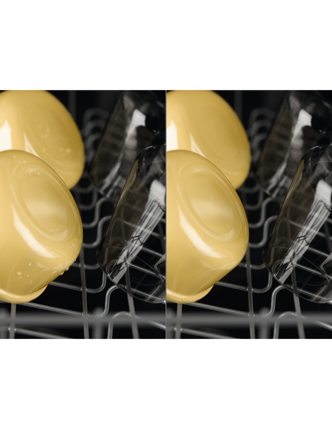 La tecnologia della lavastoviglie AirDry fa terminare ogni ciclo con una ventata di aria fresca, offrendo risultati tre volte migliori dei sistemi a porta chiusa. L'anta si apre automaticamente durante la fase di asciugatura e l'aria asciuga completamente piatti e posate.