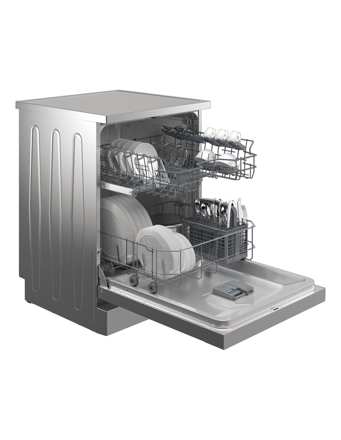 Indesit IN2FE13DT9S, lavastoviglie 60cm, Classe E, 13 coperti, Silver. Posizionamento dell'apparecchio: Libera installazione, Dimensione: Dimensione massima (60 cm), Colore della porta: Argento. Numero di coperti: 13 coperti, Classe emissione rumore: D, Emissione acustica: 51 dB. Classe efficienza energetica: E, Consumo di acqua per ciclo: 12,9 L, Consumo energetico per 100 cicli: 94 kWh. Larghezza: 600 mm, Profondità: 600 mm, Altezza: 850 mm. Tecnologie Indesit (lavaggio stoviglie): Fast&Clean, Push&Go