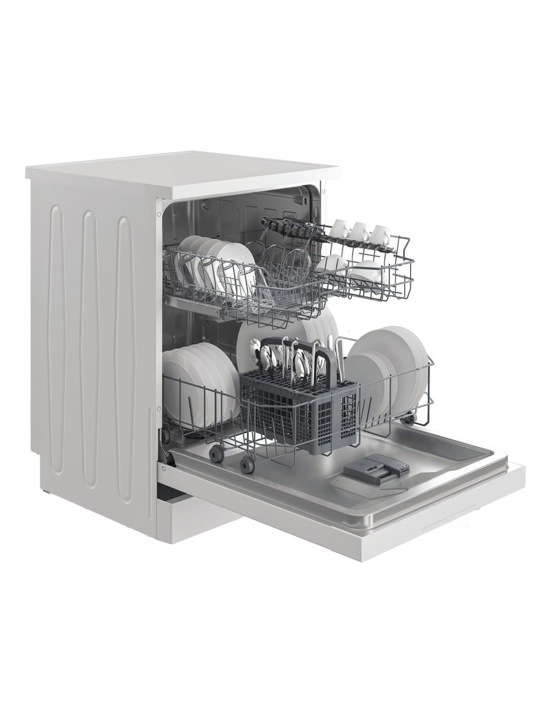 Indesit IN2FE13DT9W, lavastoviglie 60cm, Classe E, 13 coperti, Bianco. Posizionamento dell'apparecchio: Libera installazione, Dimensione: Dimensione massima (60 cm), Colore della porta: Bianco. Numero di coperti: 13 coperti, Classe emissione rumore: D, Emissione acustica: 51 dB. Classe efficienza energetica: E, Consumo di acqua per ciclo: 12,9 L, Consumo energetico per 100 cicli: 94 kWh. Larghezza: 600 mm, Profondità: 600 mm, Altezza: 850 mm. Tecnologie Indesit (lavaggio stoviglie): Fast&Clean, Push&Go