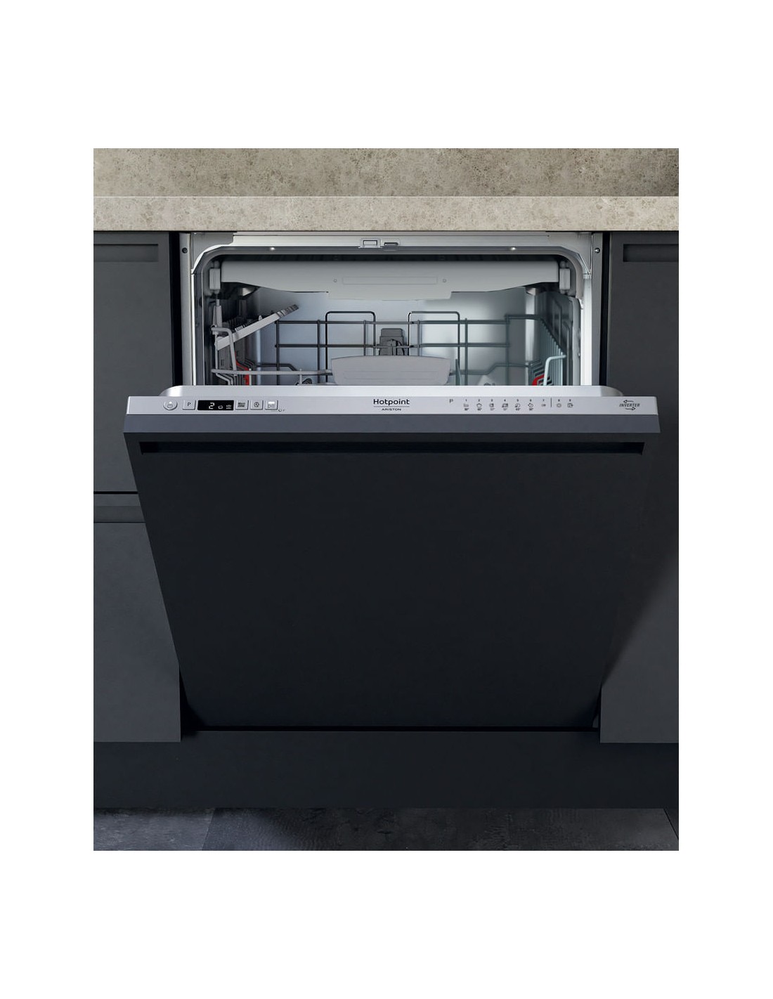 Caratteristiche di questa lavastoviglie da incasso Hotpoint Ariston: lavastoviglie con una grande capacità di carico con un gran numero di coperti disponibile. Classe di efficienza energetica C. Eccezionale riduzione del consumo di acqua. Color argento. Tecnologia innovativa che garantisce un funzionamento super silezioso, per un elettrodomestico senza rumori.