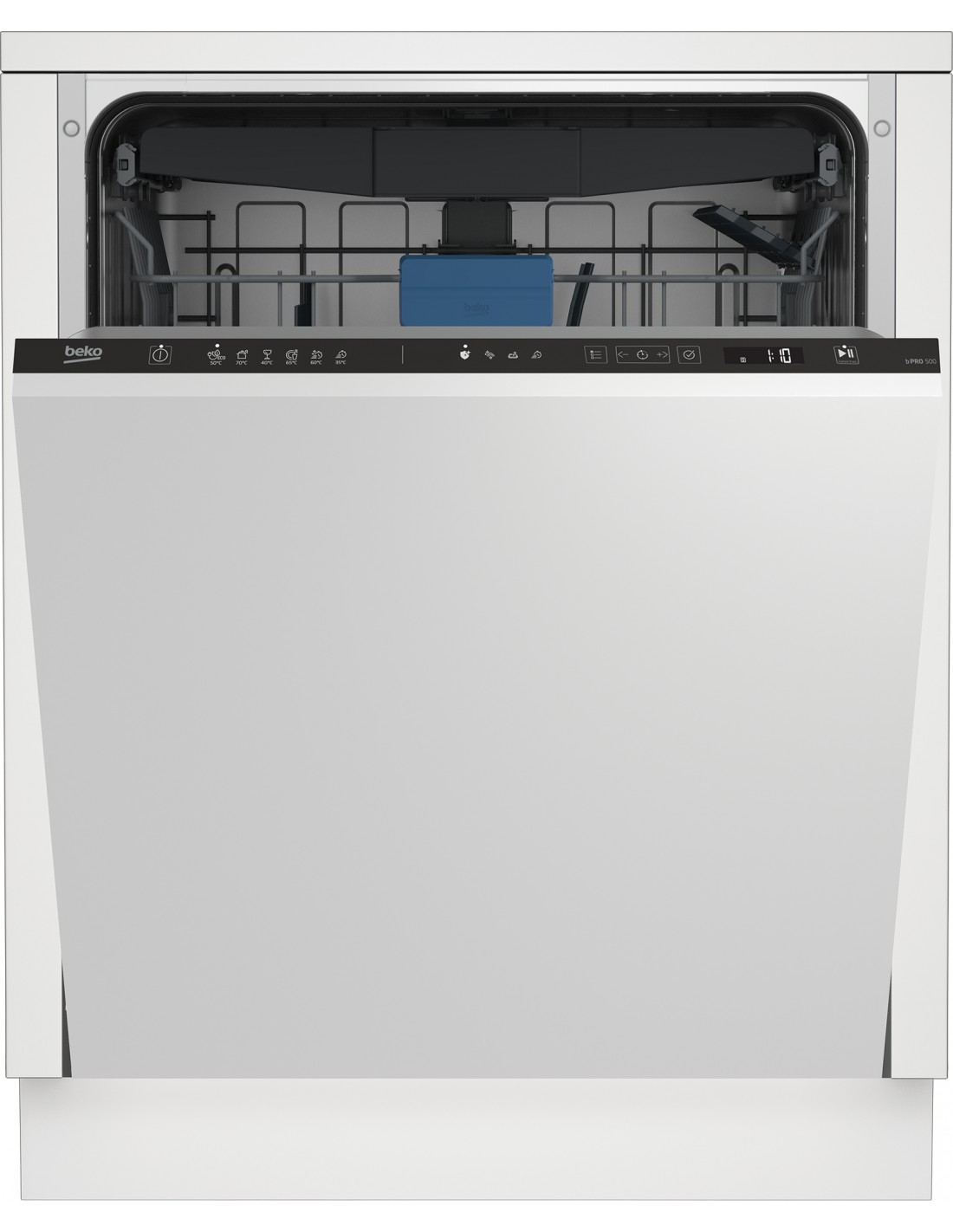 Beko b300 BDIN36550: Lavastoviglie a Scomparsa Totale Classe B, 60 cm, 15 Coperti. Posizionamento dell'apparecchio: A scomparsa totale, Dimensione: Dimensione massima (60 cm), Colore pannello di controllo: Nero. Numero di coperti: 15 coperti, Classe emissione rumore: B, Emissione acustica: 44 dB. Classe efficienza energetica: B, Consumo di acqua per ciclo: 9,9 L, Consumo energetico per 100 cicli: 65 kWh. Larghezza: 598 mm, Profondità: 550 mm, Altezza: 818 mm. Tecnologie Beko (lavaggio stoviglie): Fast+, TrayWash™ System, SelfDry, SteamGloss®, SaveWater
