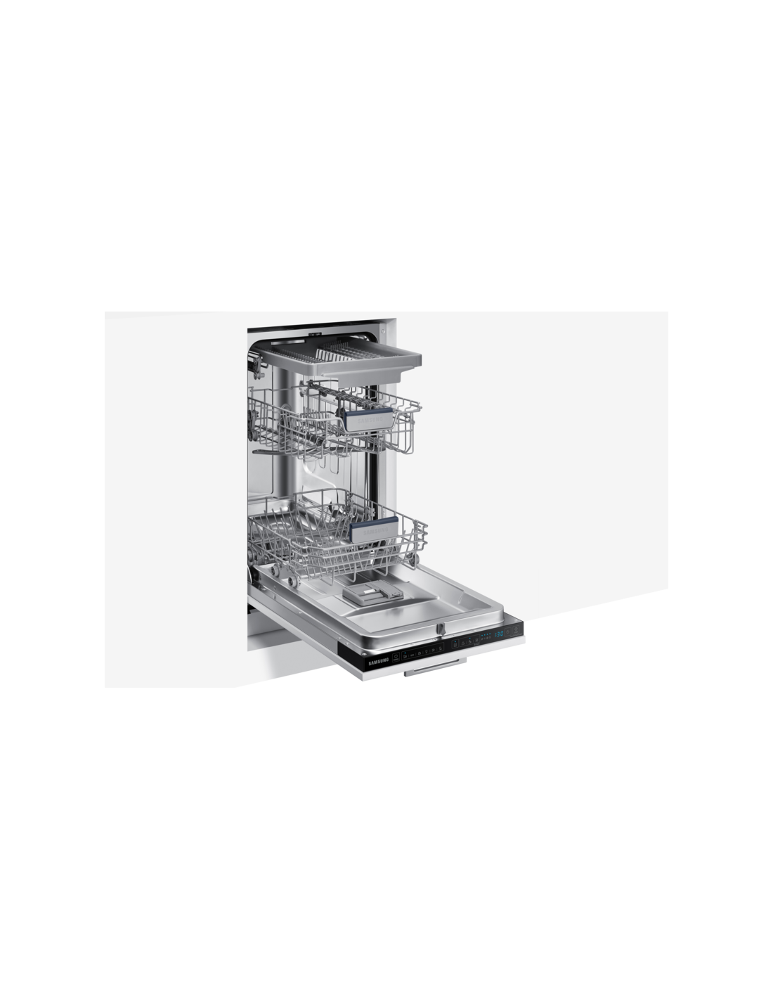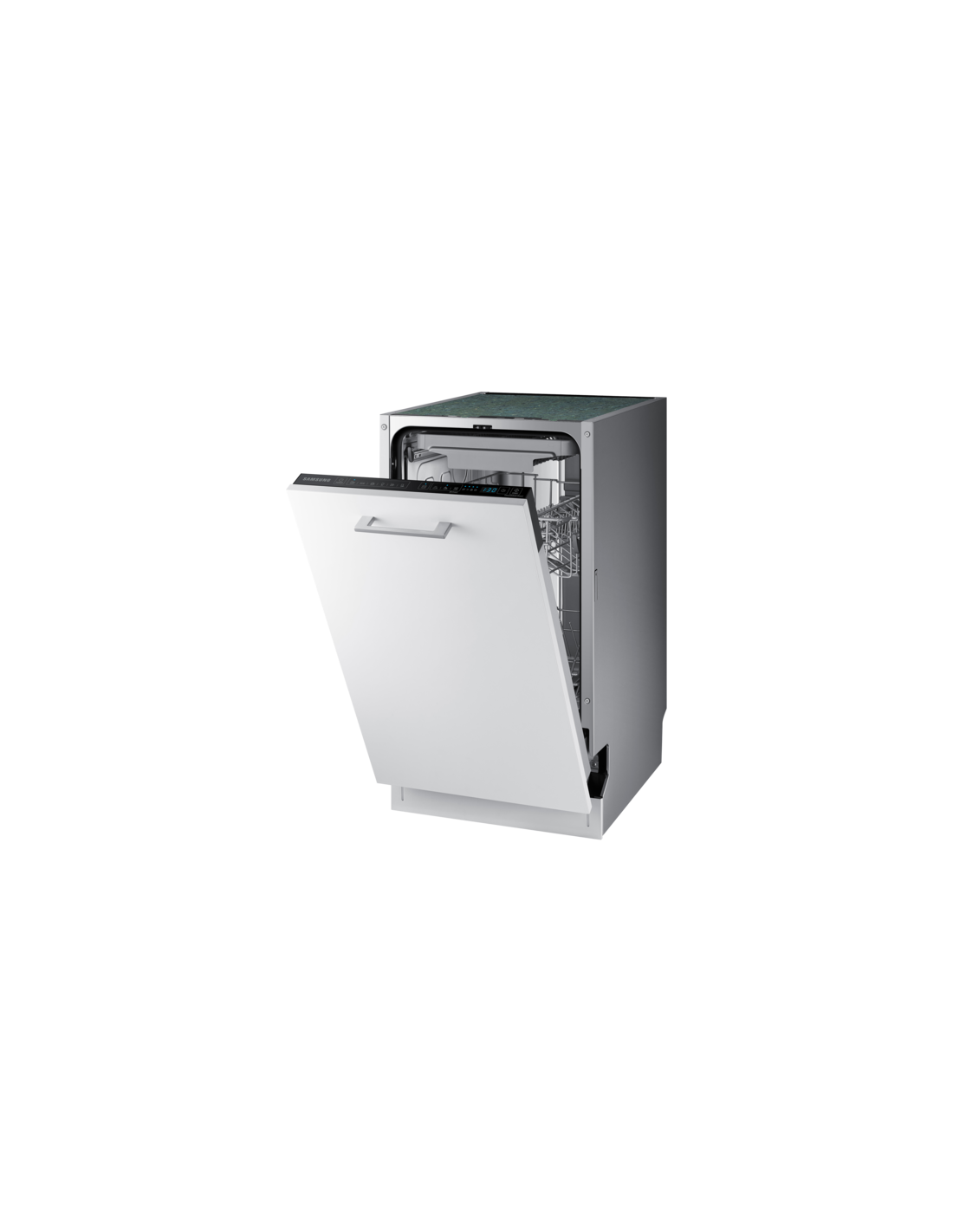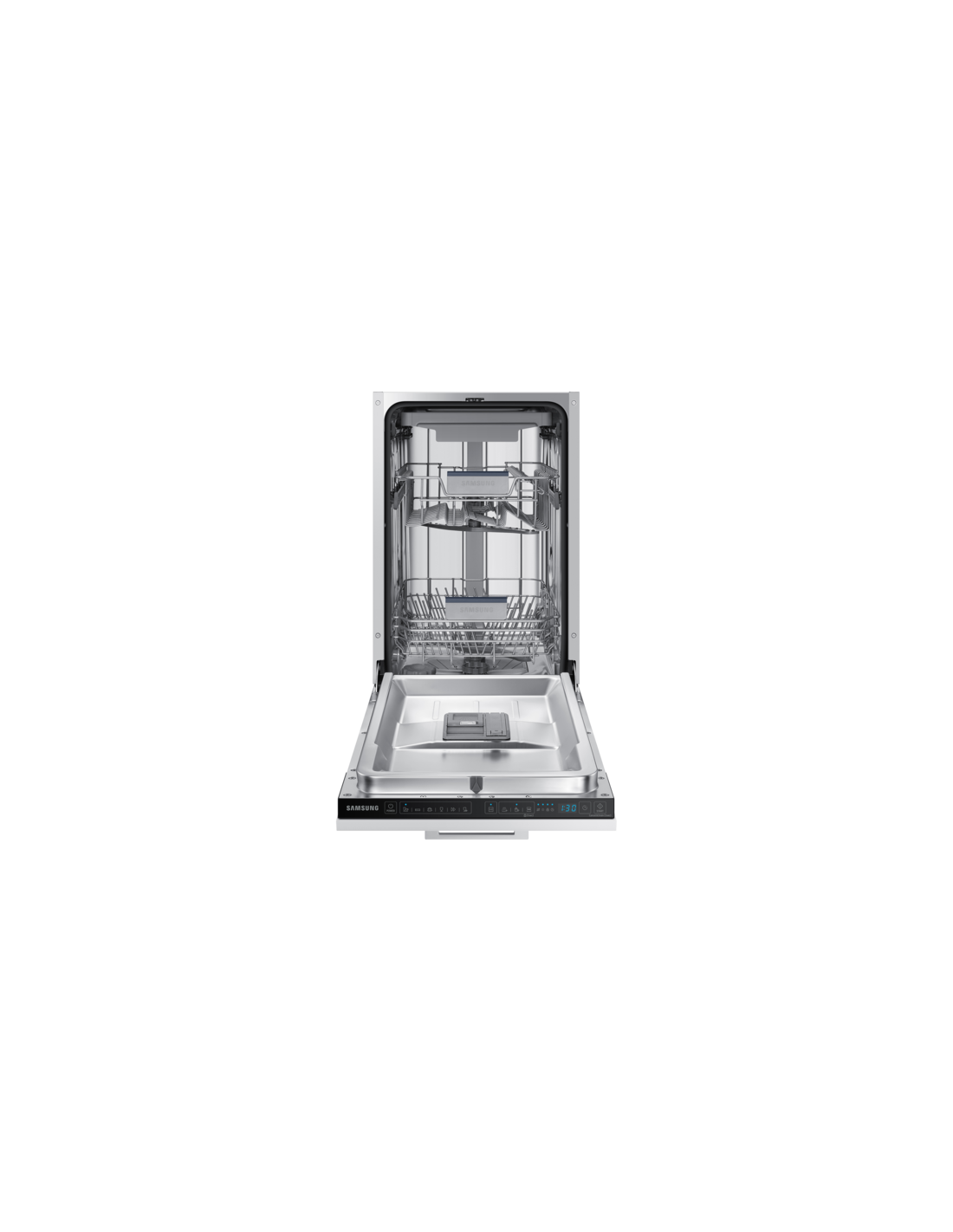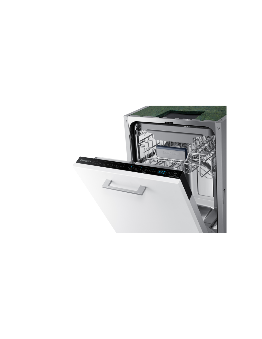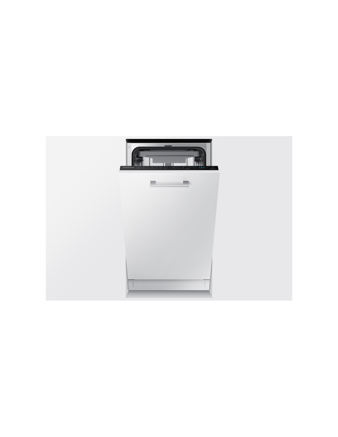 Samsung DW50R4050BB. Posizionamento dell'apparecchio: A scomparsa totale, Dimensione: Compatta (45 cm), Colore della porta: Bianco. Numero di coperti: 10 coperti, Classe emissione rumore: C, Emissione acustica: 46 dB. Regolazione piedini: 5 cm. Classe efficienza energetica: F, Consumo di acqua per ciclo: 9,9 L, Consumo energetico per 100 cicli: 84 kWh. Larghezza: 450 mm, Profondità: 550 mm, Altezza: 815 mm