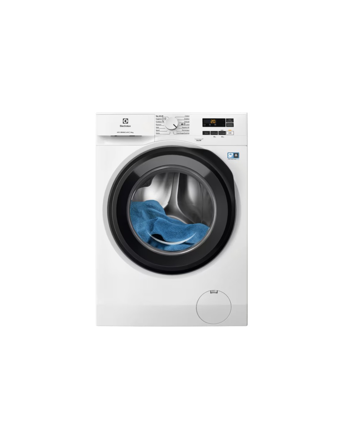 Washing programs | Cotone, Delicati/Seta, Piumino/piumone, Eco 40-60°C, Igiene/Allergy Care, Jeans/denim, Esterno, Prelavaggio, Rapido, Risciacquo, Centrifuga/scarico, Sport, Sintetico, Lana |