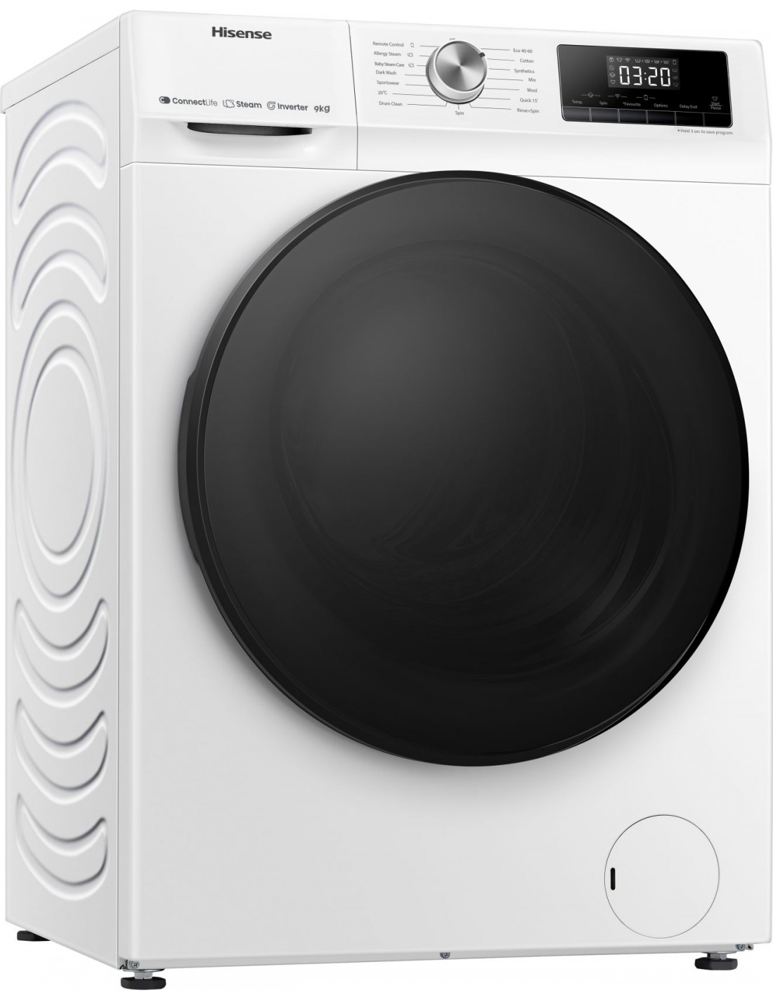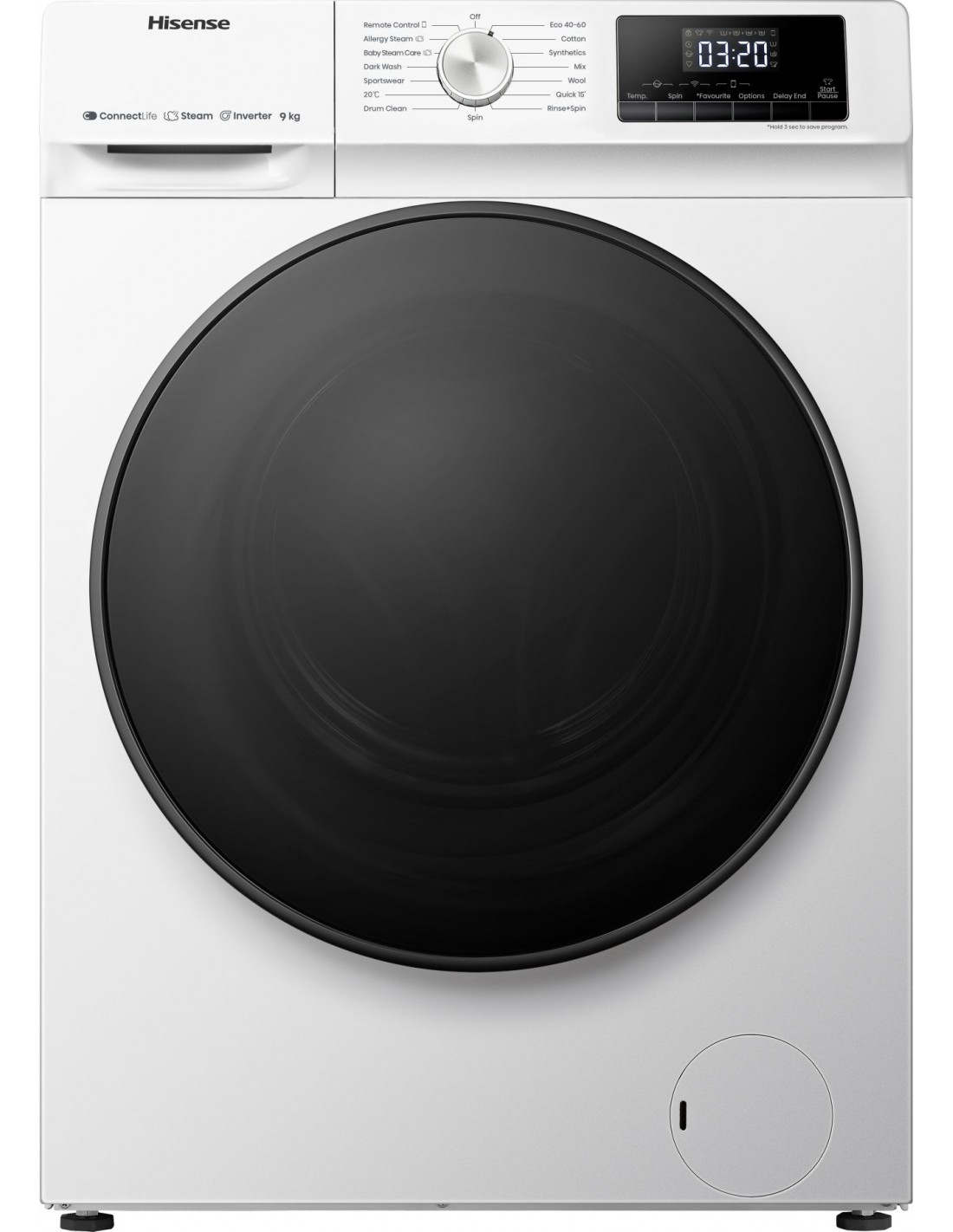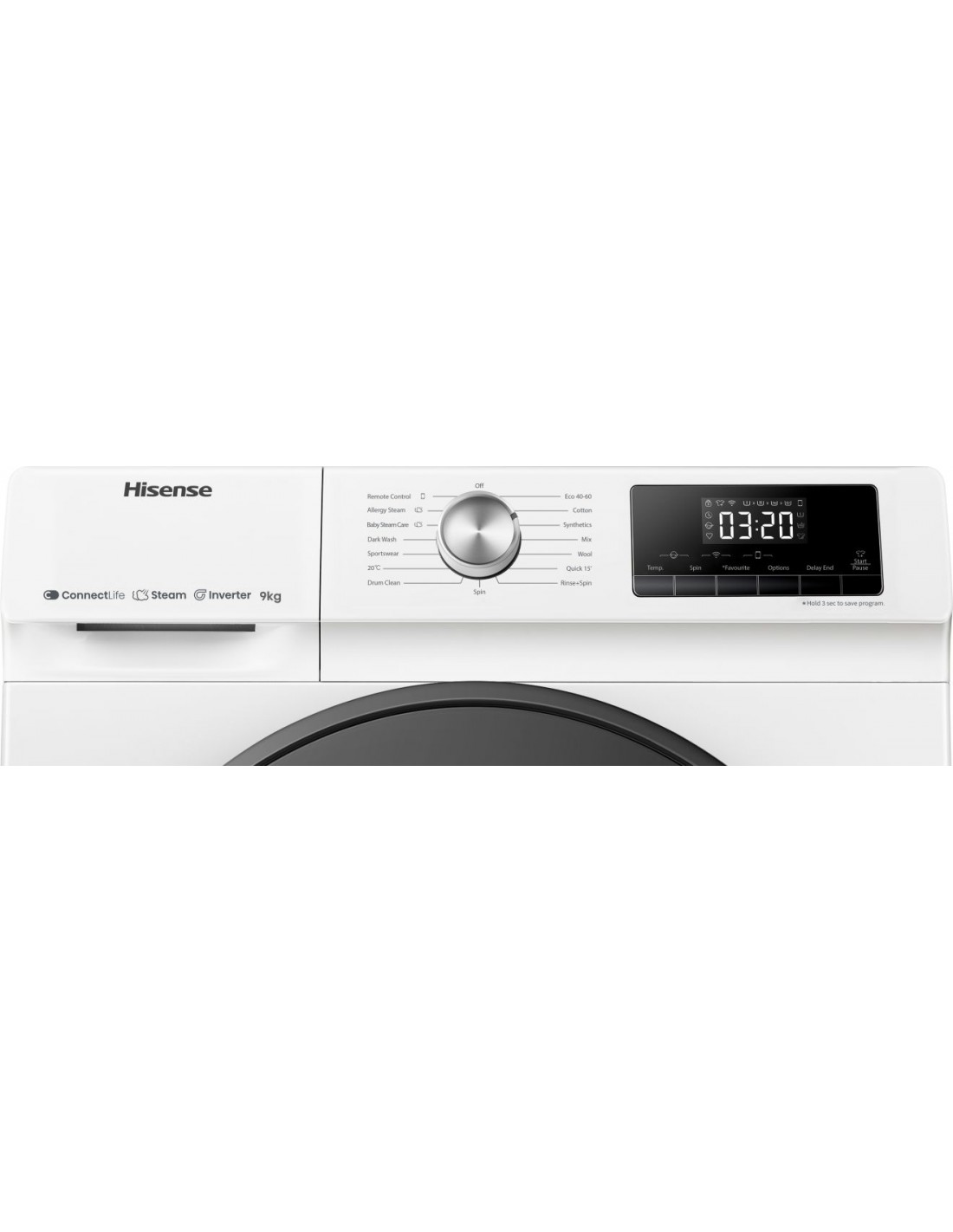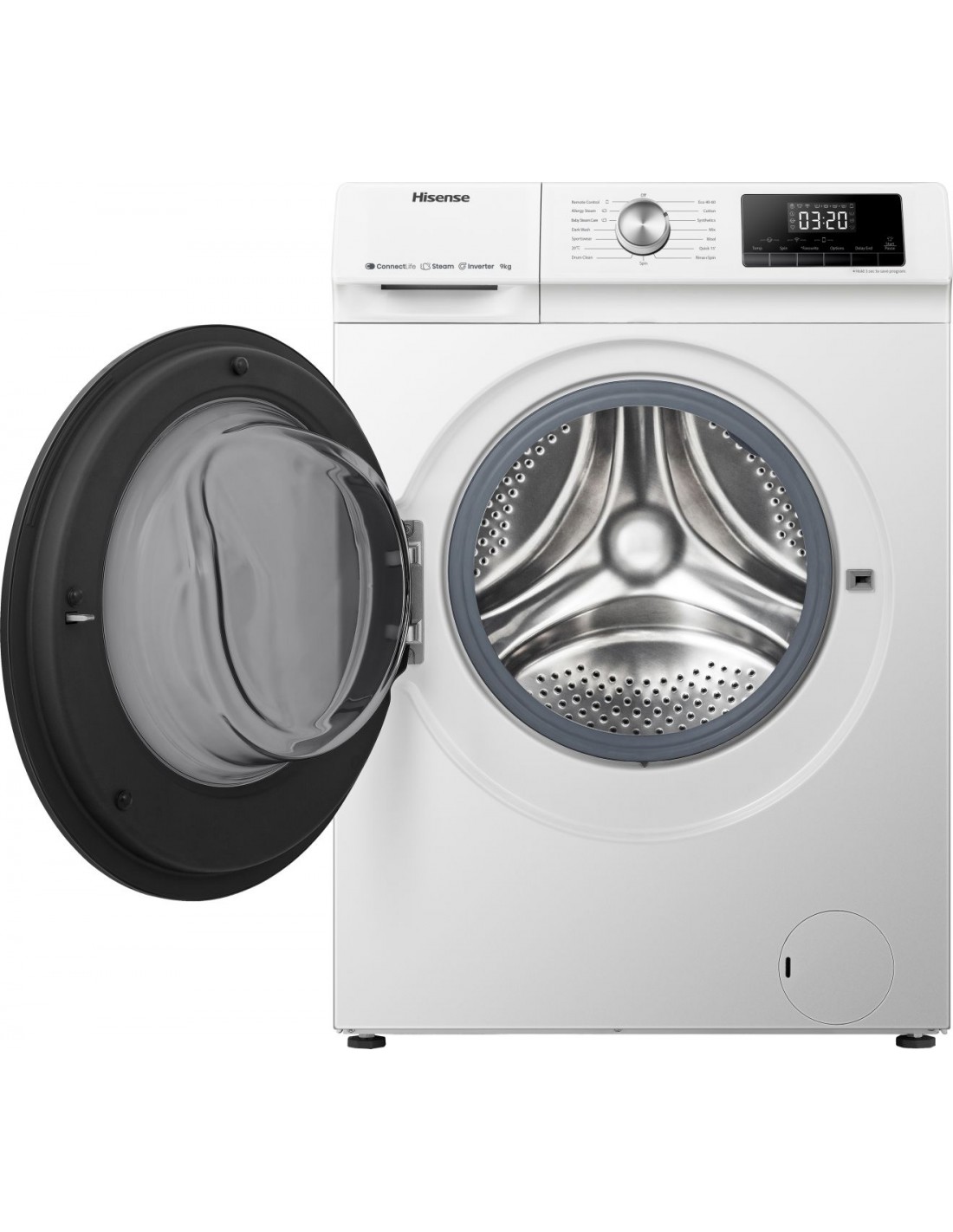 Hisense WFQA9014EVJMW. Tipo di carica: Caricamento frontale. Capacità cestello: 9 kg, Classe di efficienza della centrifuga: B, Silenziosità (centrifuga): 72 dB, Velocità di centrifuga massima: 1400 Giri/min. Colore del prodotto: Nero, Bianco. Larghezza: 600 mm, Profondità: 610 mm, Altezza: 850 mm. Classe efficienza energetica: A
