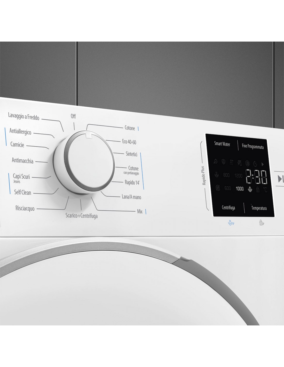 | Washing programs | Nero, Camicia/maglietta, Freddo, Cotone, Eco 40-60°C, A mano/Lana, Igiene/Allergy Care, Jeans/denim, Mix, Prelavaggio, Rapido 14min, Risciacquo, Centrifuga/scarico, Sintetico |