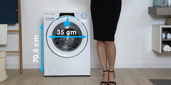 Il nuovo design ergonomico dell'oblò di RapidÓ, più alto e capiente, renderà più semplice e veloce il carico e lo scarico del tuo bucato.