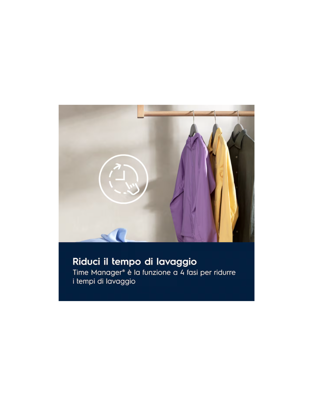 Non lavare più del necessario. Lava i tuoi capi con la funzione regolabile a 4 fasi Time Manager® per ridurre la durata del ciclo di lavaggio.