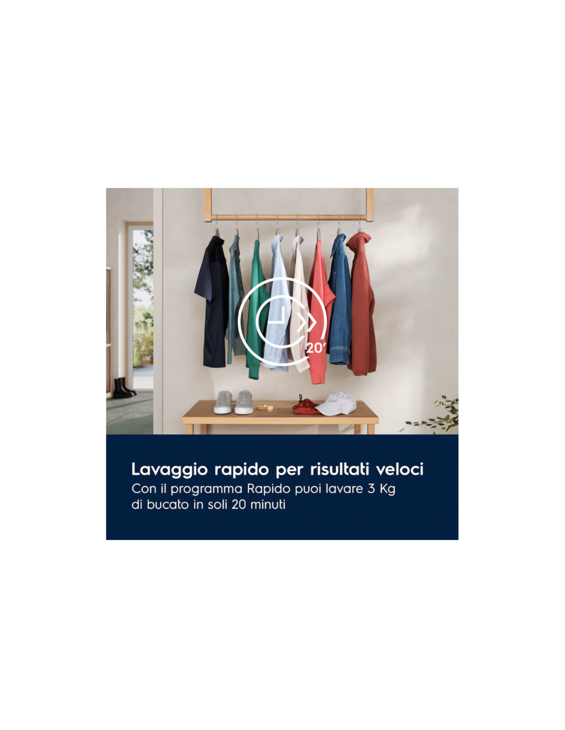 Il programma Rapido consente di lavare rapidamente i vestiti per una pulizia veloce. In soli 20 minuti puoi lavare 3 kg di biancheria.