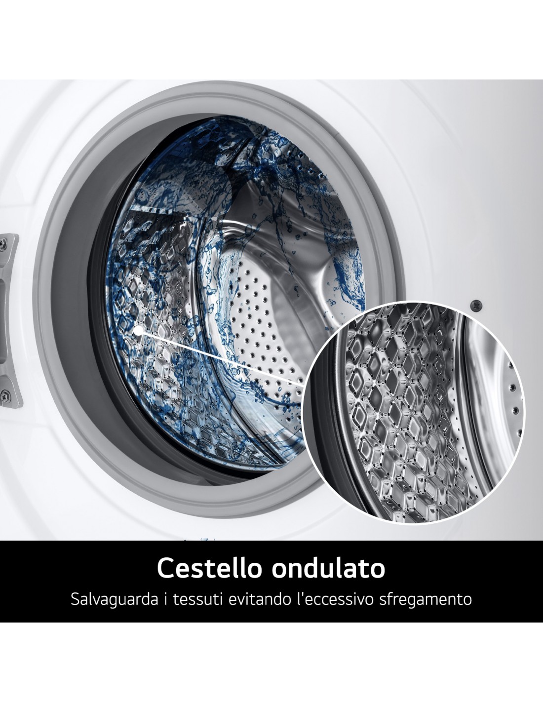 Il cestello di questa lavatrice ha la superficie a bolle, una particolare conformazione che permette di salvaguardare i tessuti evitando l'eccessivo sfregamento col cestello durante il lavaggio e la centrifuga.
