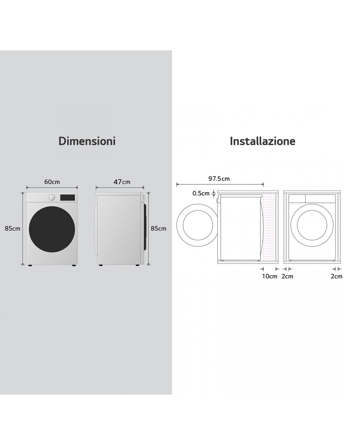 | Profondità con oblò incluso | 53 cm |