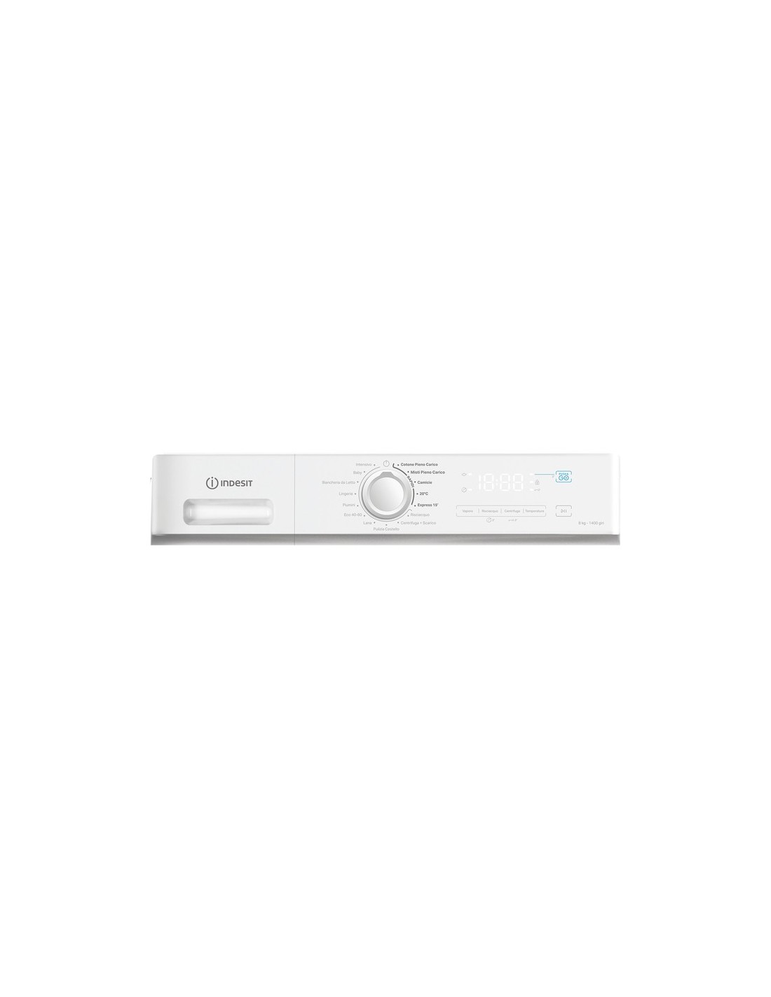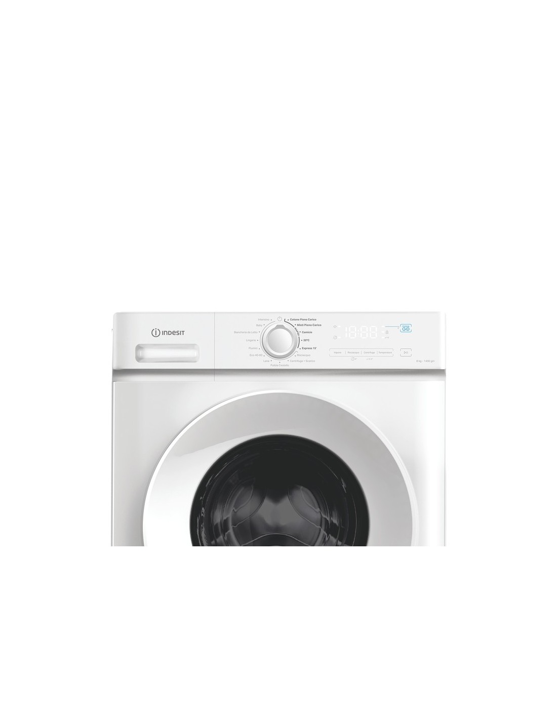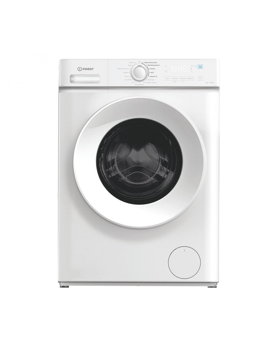 Indesit IMA 864 MY TIME IT 8kg, classe A, White, 1400 giri, Display Digitale. Tipo di carica: Caricamento frontale. Capacità cestello: 8 kg, Classe di efficienza della centrifuga: C, Silenziosità (centrifuga): 76 dB, Velocità di centrifuga massima: 1400 Giri/min. Colore del prodotto: Bianco. Larghezza: 600 mm, Profondità: 508 mm, Altezza: 850 mm. Classe efficienza energetica: A