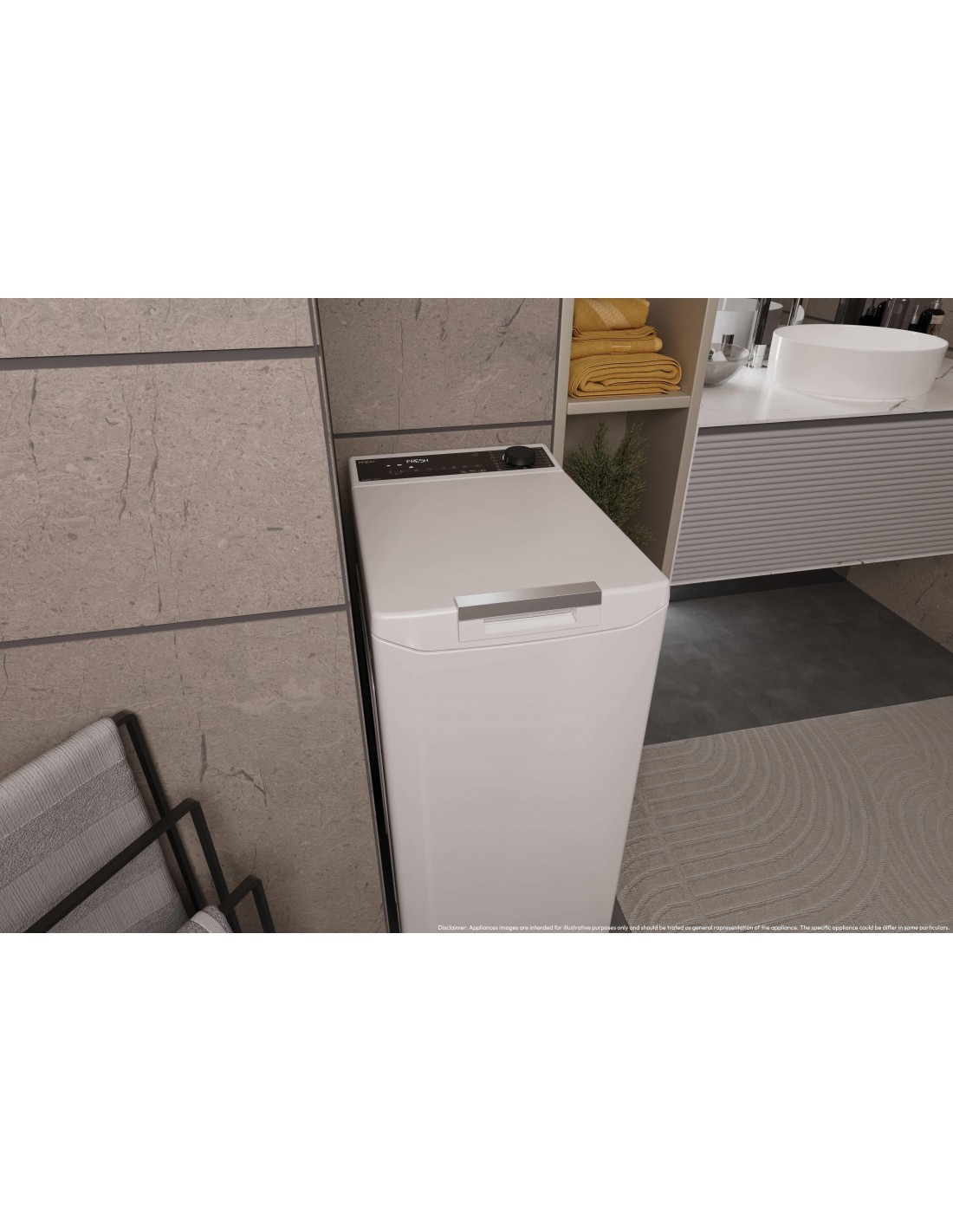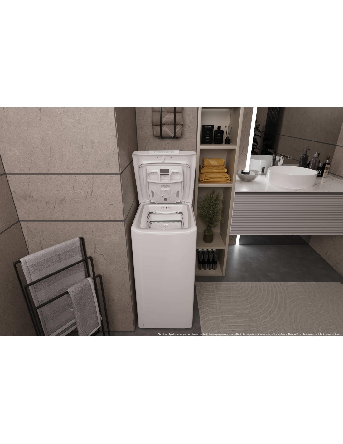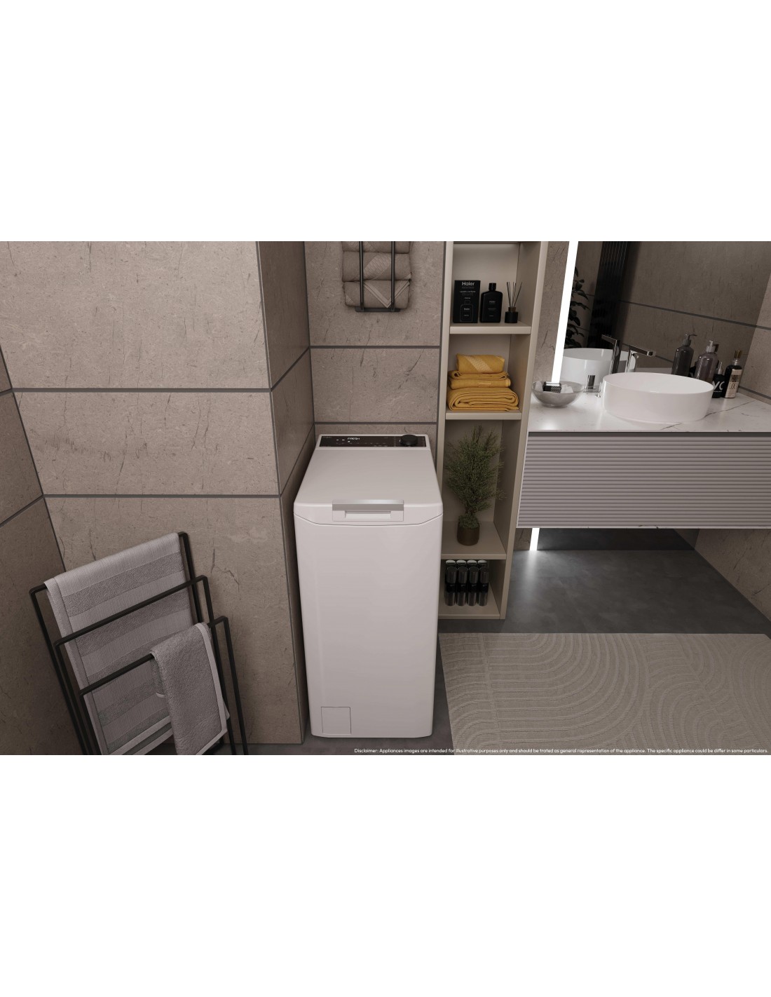 Haier T Series 7, Lavatrice Carica dall'alto 7 KG, 15% più efficente della classe A, 1200 giri, Bianco, Inverter, Vapore, THASN276TM7-S. Tipo di carica: Caricamento dall'alto. Capacità cestello: 7 kg, Classe di efficienza della centrifuga: B, Silenziosità (centrifuga): 77 dB, Velocità di centrifuga massima: 1200 Giri/min. Colore del prodotto: Bianco. Larghezza: 405 mm, Profondità: 600 mm, Altezza: 860 mm. Classe efficienza energetica: A