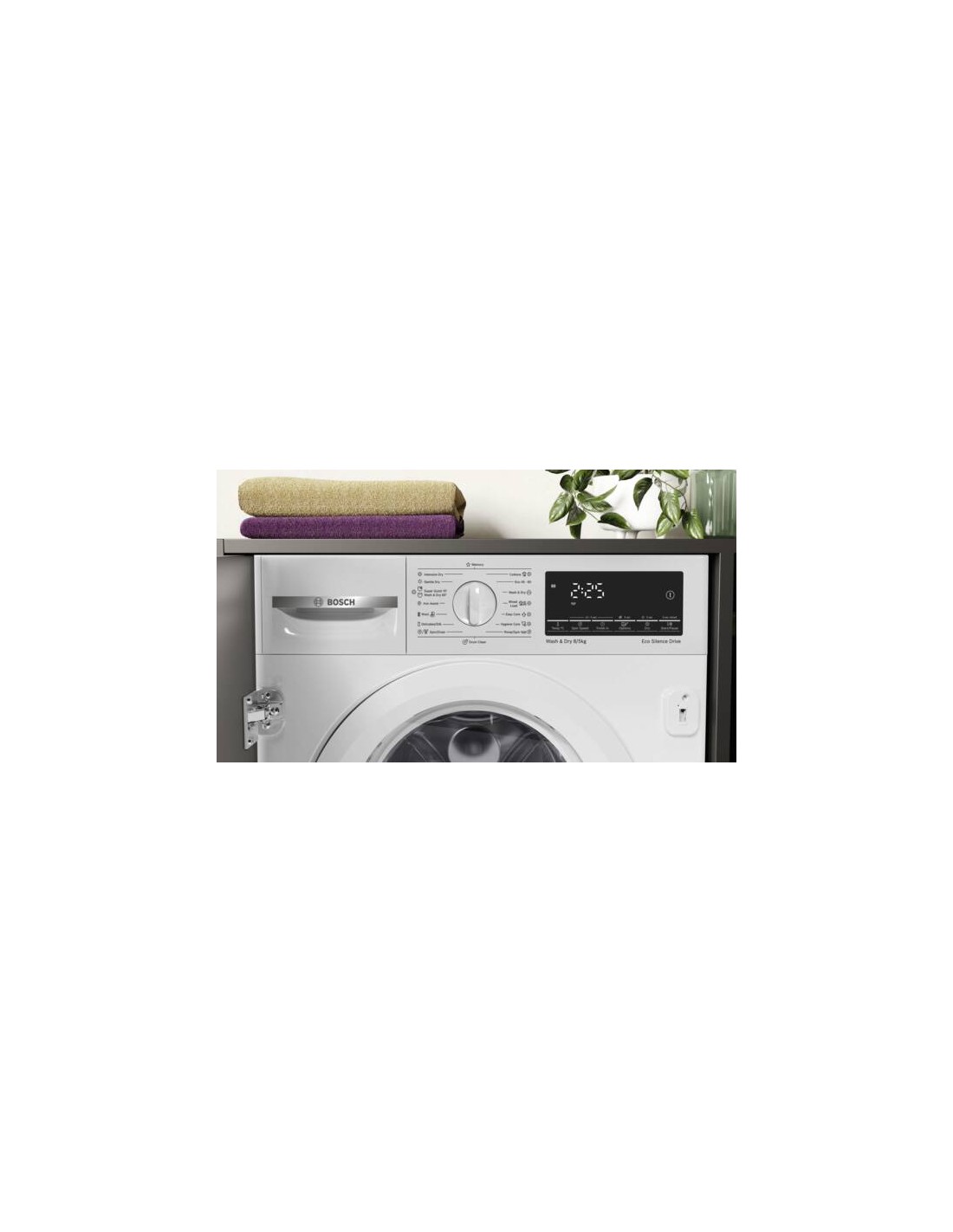 Bosch Serie 6 WKD28490EU. Tipo di carica: Caricamento frontale, Posizionamento dell'apparecchio: Da incasso, Colore del prodotto: Bianco. Capacità di asciugatura: 5 kg, Velocità di centrifuga massima: 1400 Giri/min, Classe di efficienza della centrifuga: B. Lunghezza cavo: 1,5 m, Regolazione piedini: 2 cm. Classe di efficienza energetica (lavaggio): A, Classe di efficienza energetica( lavaggio e asciugatura): E, Consumo di acqua (lavaggio): 48 L. Tecnologie Bosch (cura dei vestiti): EcoSilence Drive™