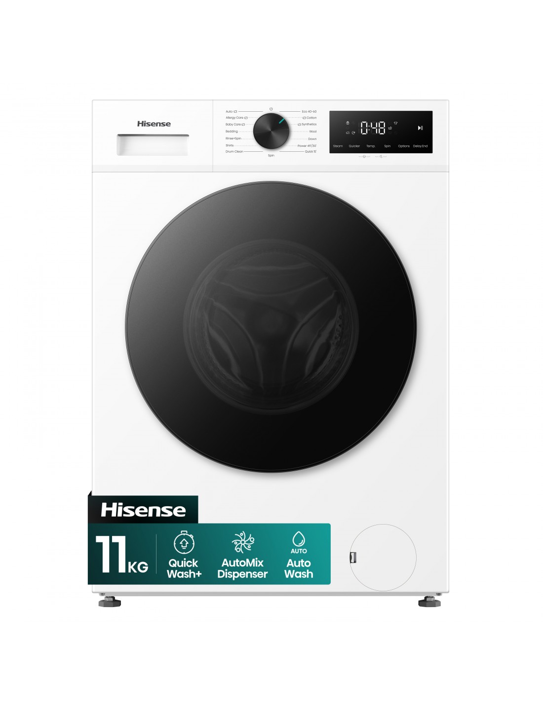 Hisense WF1I1142BWL2. Tipo di carica: Caricamento frontale. Capacità cestello: 11 kg, Classe di efficienza della centrifuga: B, Silenziosità (centrifuga): 72 dB, Velocità di centrifuga massima: 1400 Giri/min. Colore del prodotto: Bianco. Larghezza: 595 mm, Profondità: 590 mm, Altezza: 845 mm. Classe efficienza energetica: A