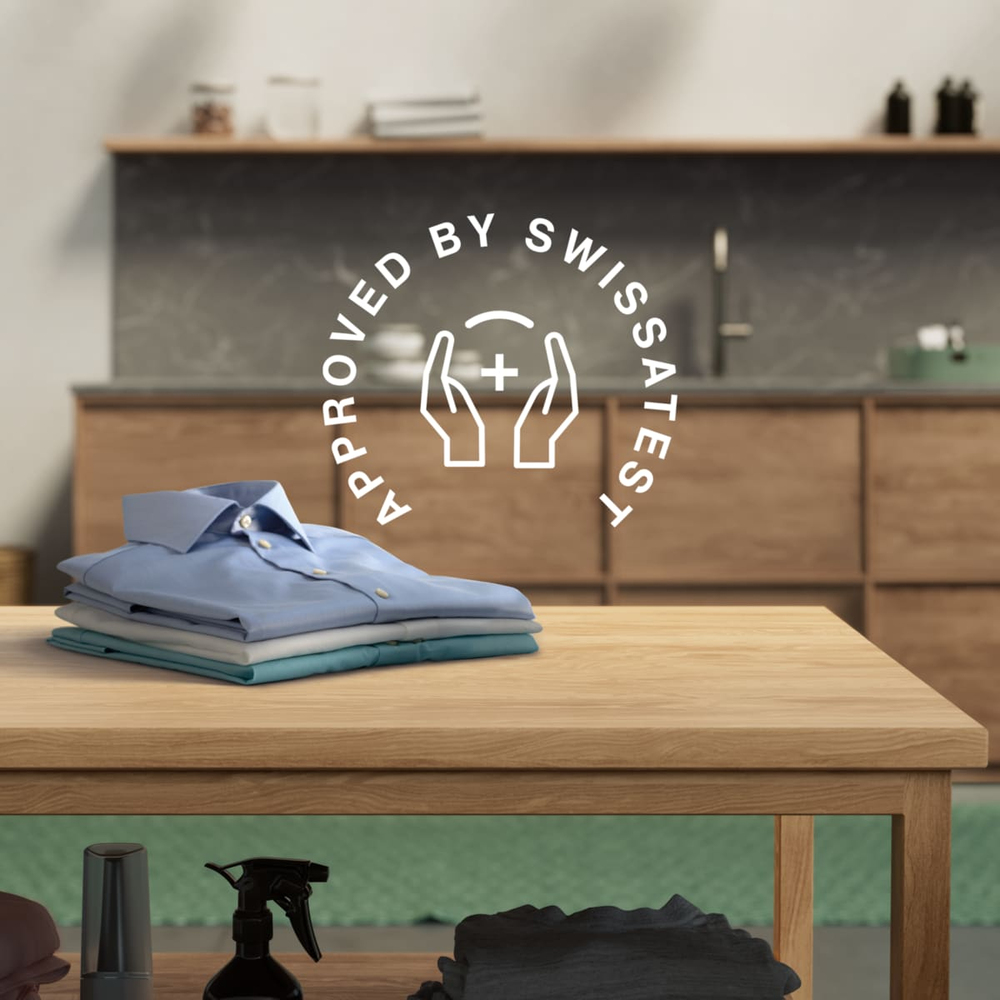Rimuove più del 99,99% di virus e batteri[2] dagli indumenti