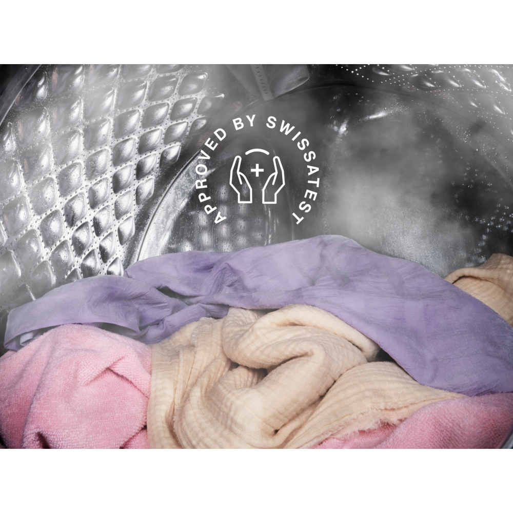 Il programma vapore Anti-Allergy, certificato da Swissatest, combina l'uso del vapore al ciclo di lavaggio, per eliminare più del 99,99% di virus e batteri[1] al di sopra dei 60°C. Allo stesso tempo, aiuta a ridurre anche pollini e allergeni, per capi più puliti e igienici.