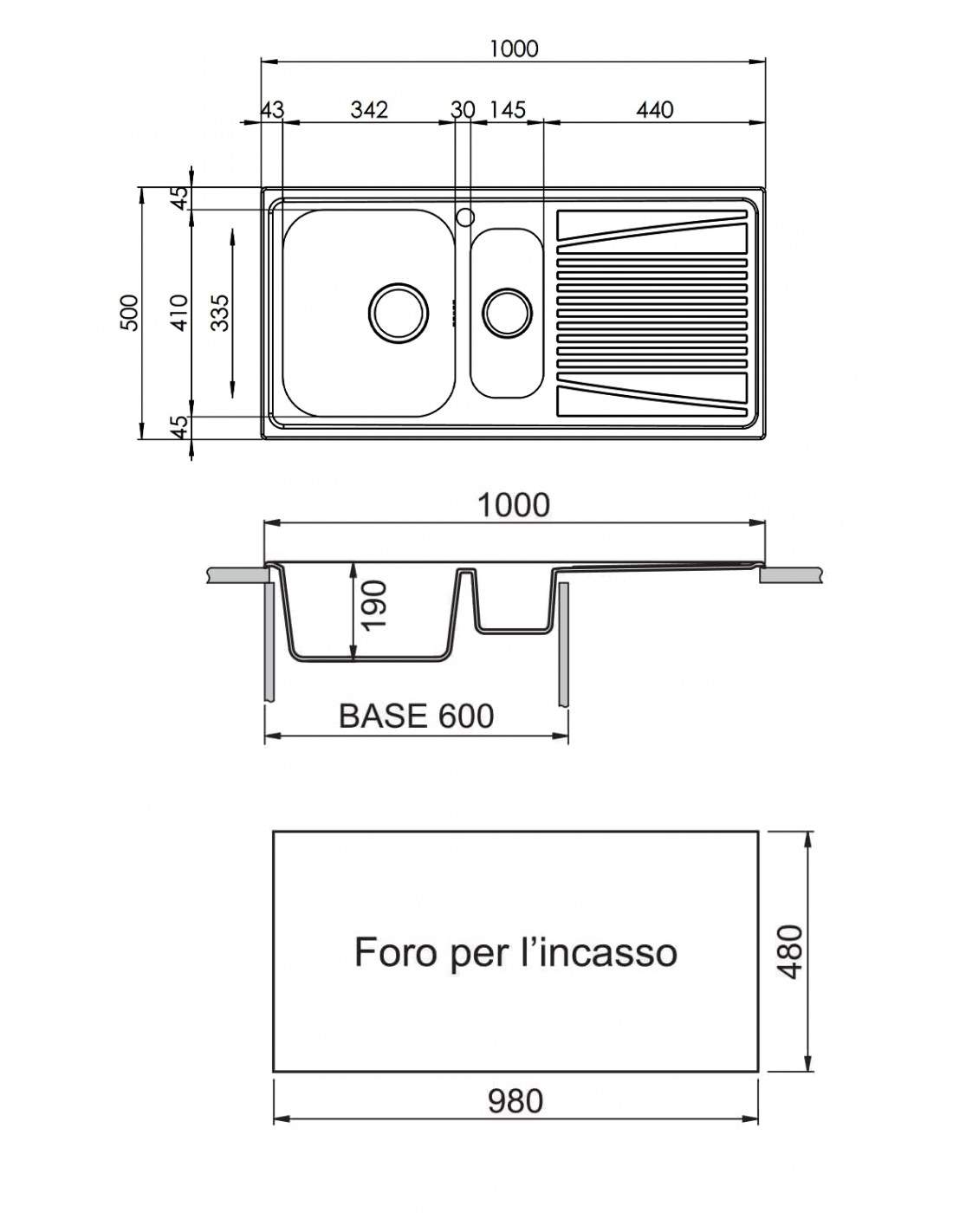 | Dimensioni seconda vasca (LxL) | 145 x 335 mm |