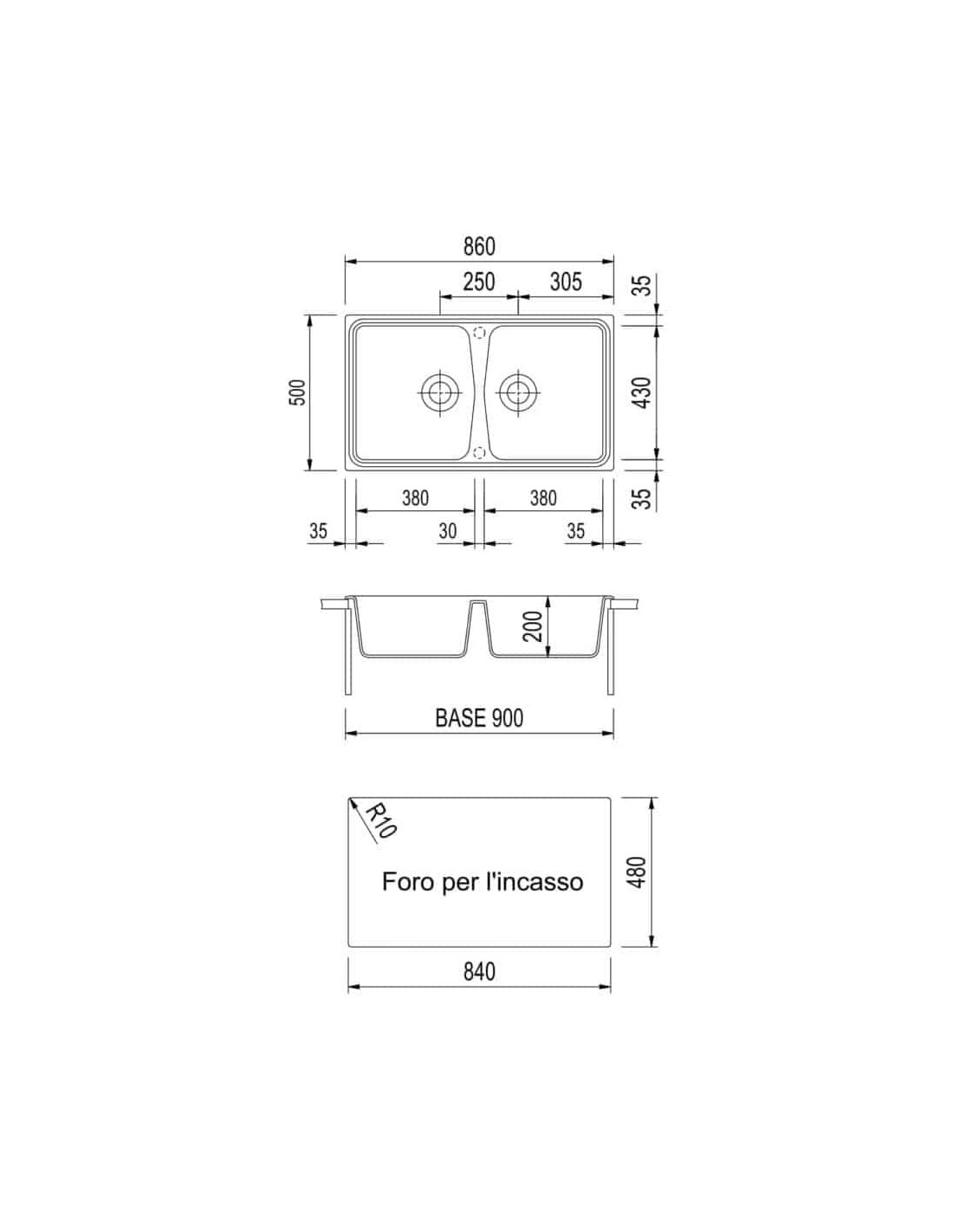 Plados Spazio. Tipo di lavello: Lavello montato su piano, Forma del lavandino: Rettangolare, Colore del prodotto: Champagne. Larghezza: 860 mm, Profondità: 500 mm, Larghezza del compartimento: 84 cm. Paese di origine: Italia
