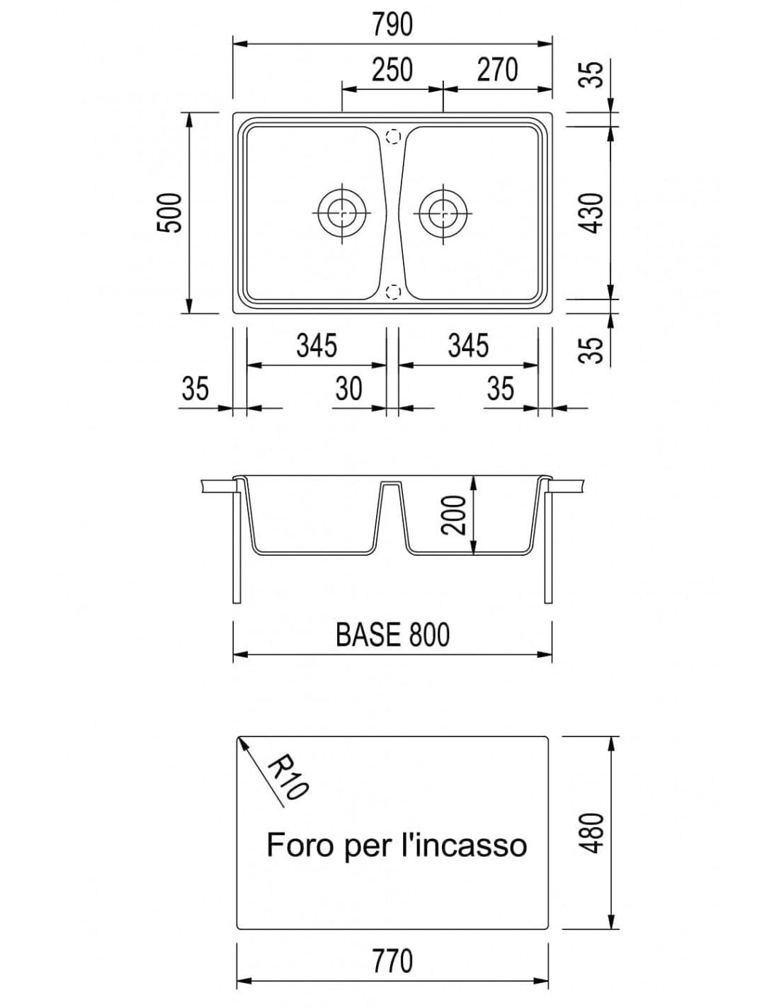 | Dimensioni seconda vasca (LxL) | 345 x 430 mm |