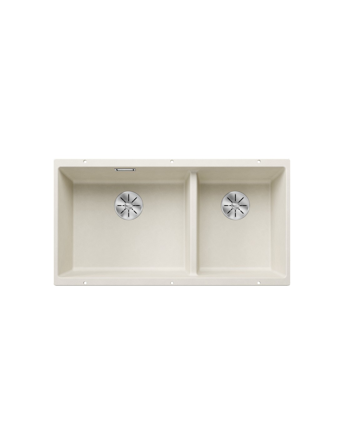 Il lavello a doppia vasca consente di sfruttare maggiormente lo spazio sul top con un solo foro d’intaglio.