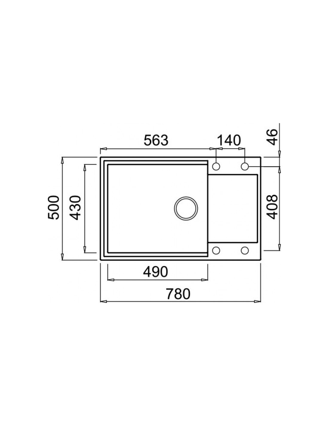 Elleci Easy 310. Tipo di lavello: Lavello montato su piano, Forma del lavandino: Rettangolare, Materiale del lavandino: Granito. Larghezza: 780 mm, Profondità: 500 mm, Altezza: 200 mm