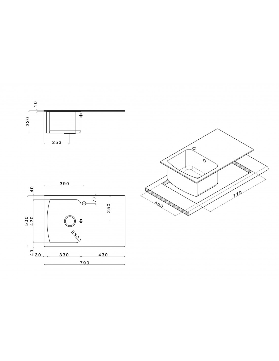 | Numero di vasche per lavello | 1 ciotole |